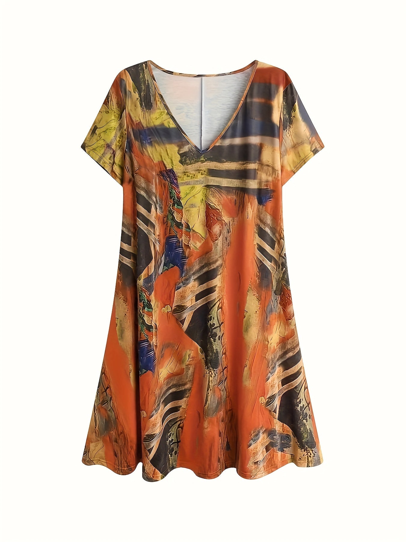 Ayollar uchun Katta O'lchamdagi Butun Yuqoridan Bosma V-Yuqori Libos
