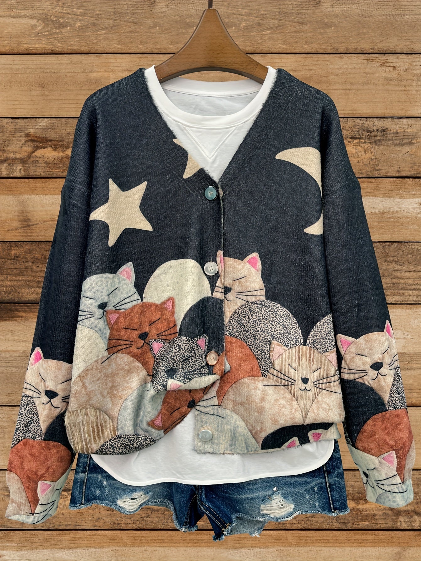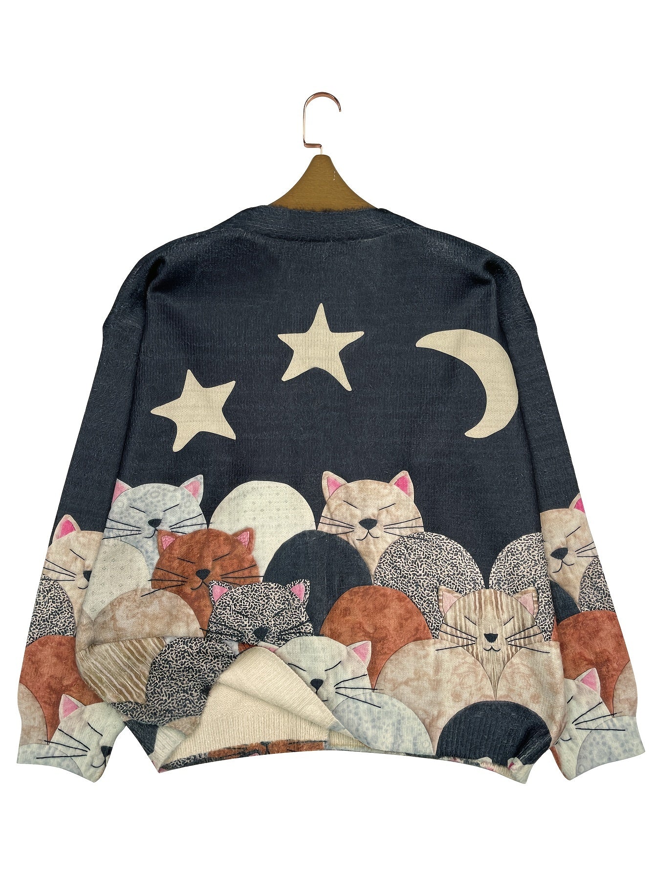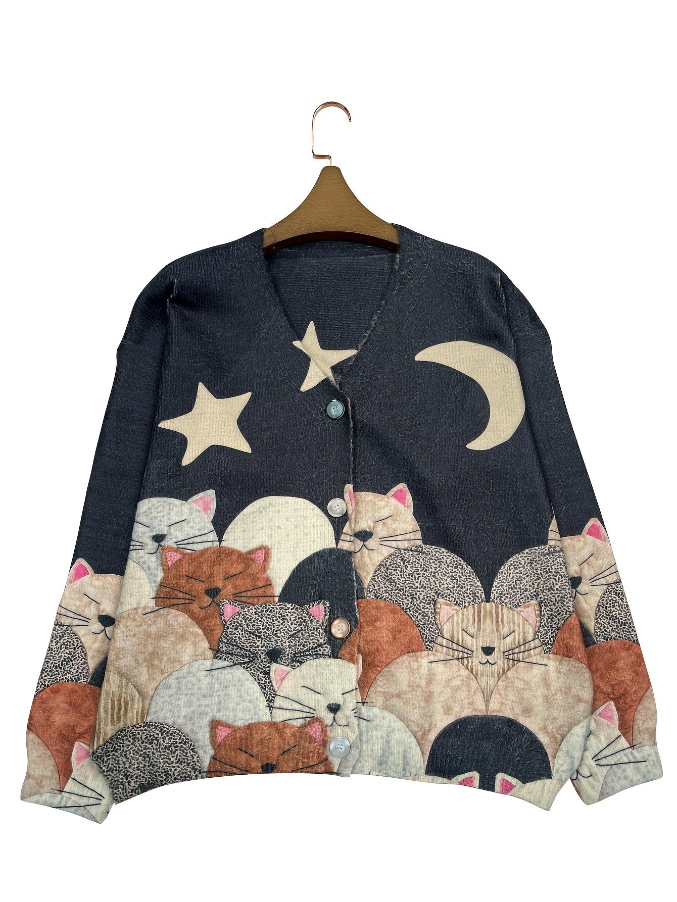 Ayollar uchun katta o'lchamdagi mushuk bosimli V-yengli qisqa cardigan uzun yengli sviter