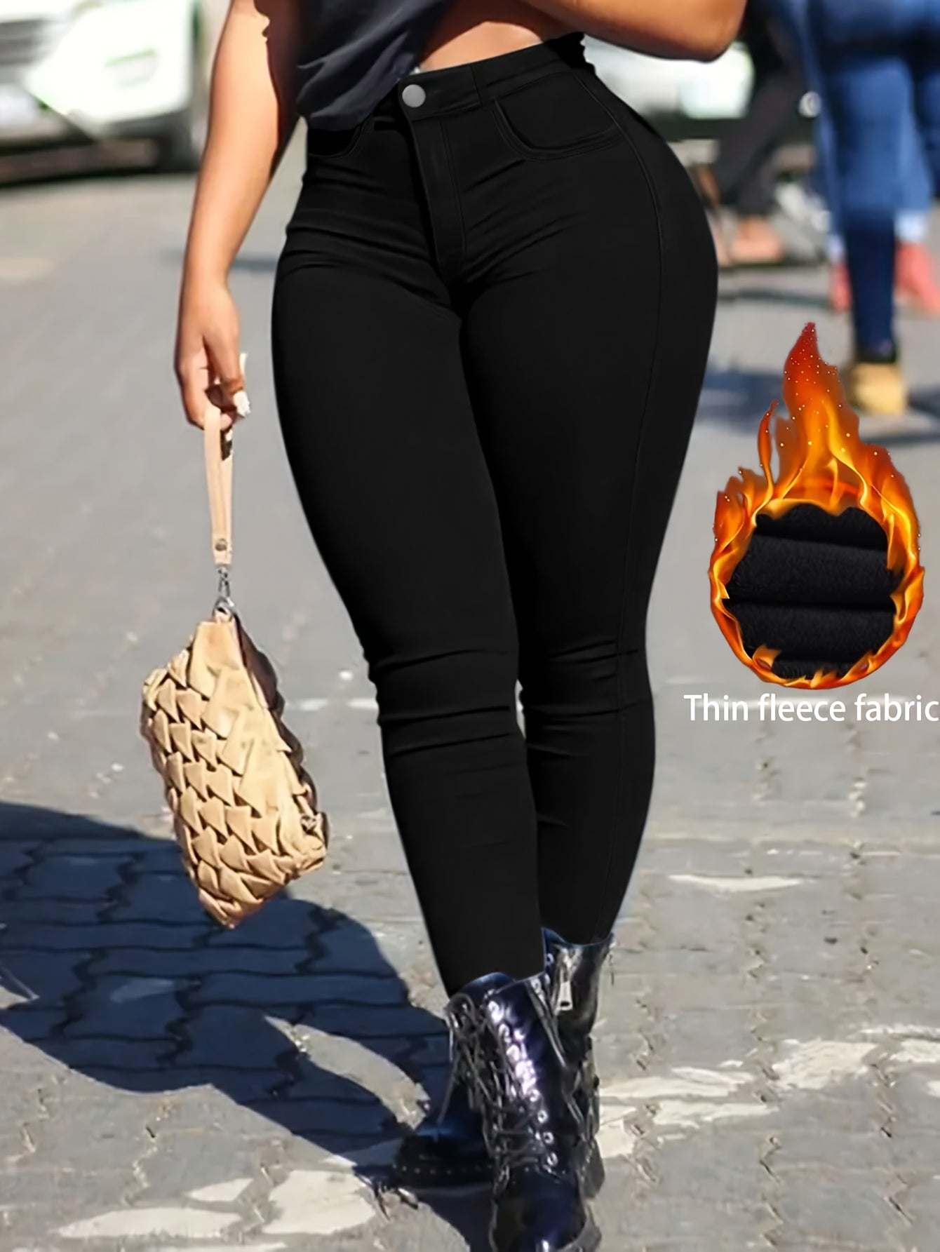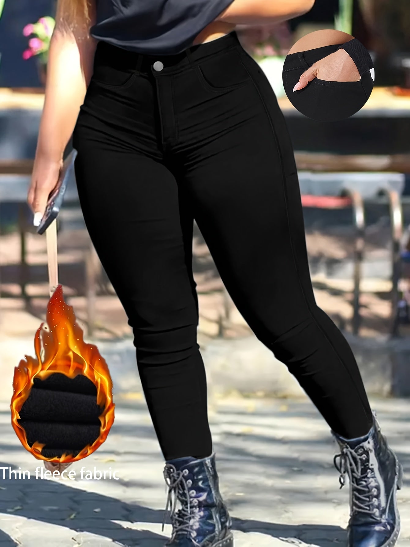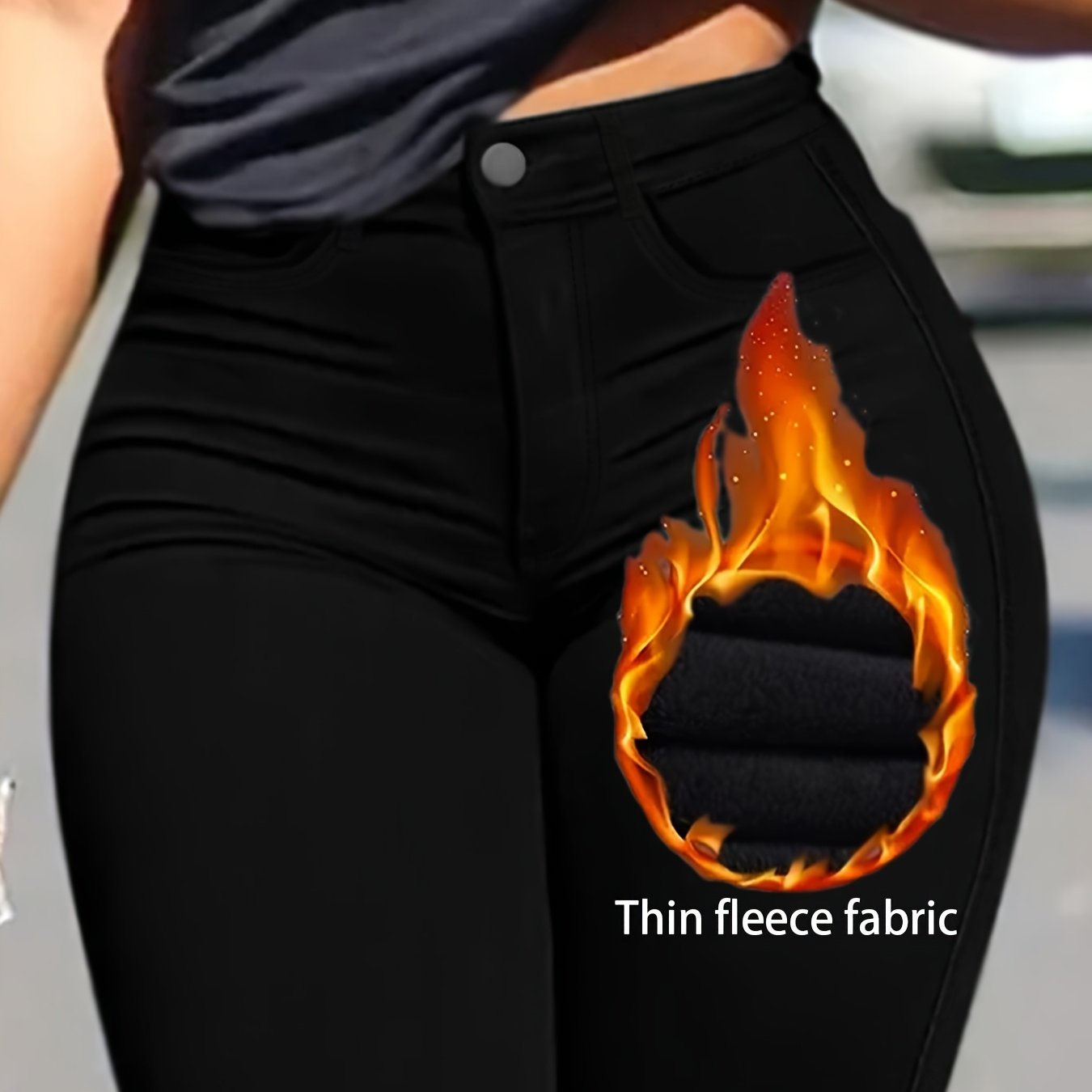 Ayollar uchun kattaroq o'lchamli fleece-ichki yupqa fit jinsilar, issiq qishli, bir rangli