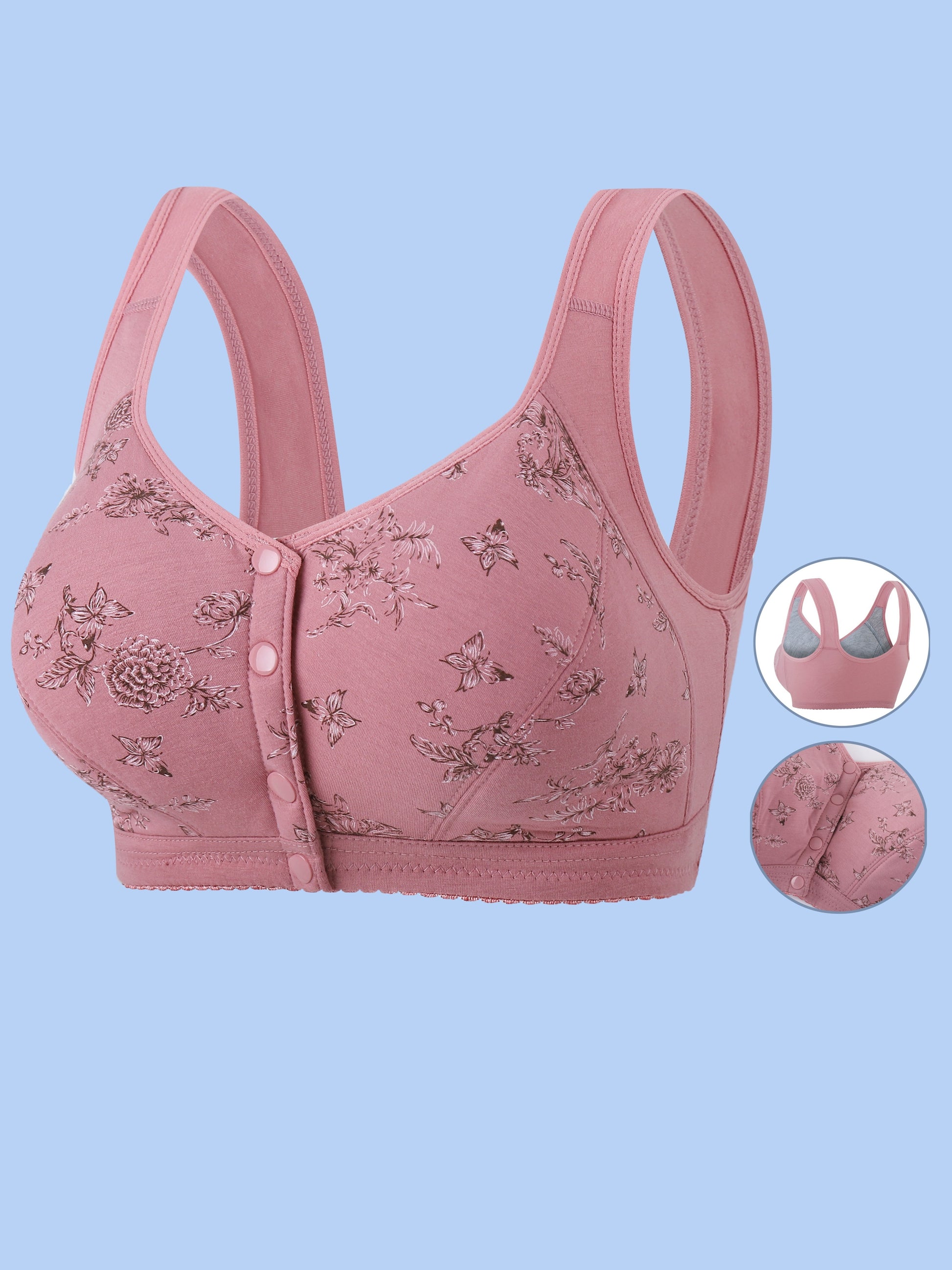 Women's Plus Size Floral Print Bras Seamless Front Closure Supportive
