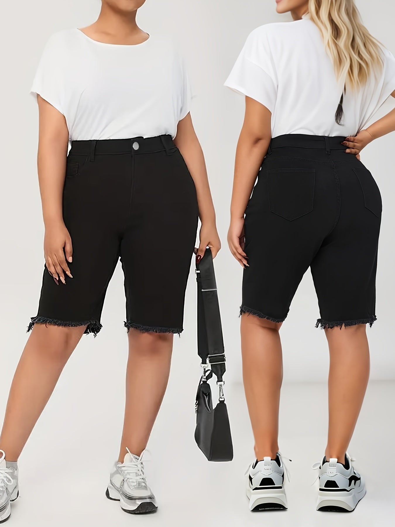 Ayollar uchun katta o'lchamli yuqori belli denim shortlar, qora, yupqa fit, kundalik, zippered