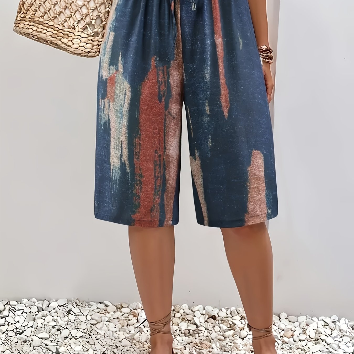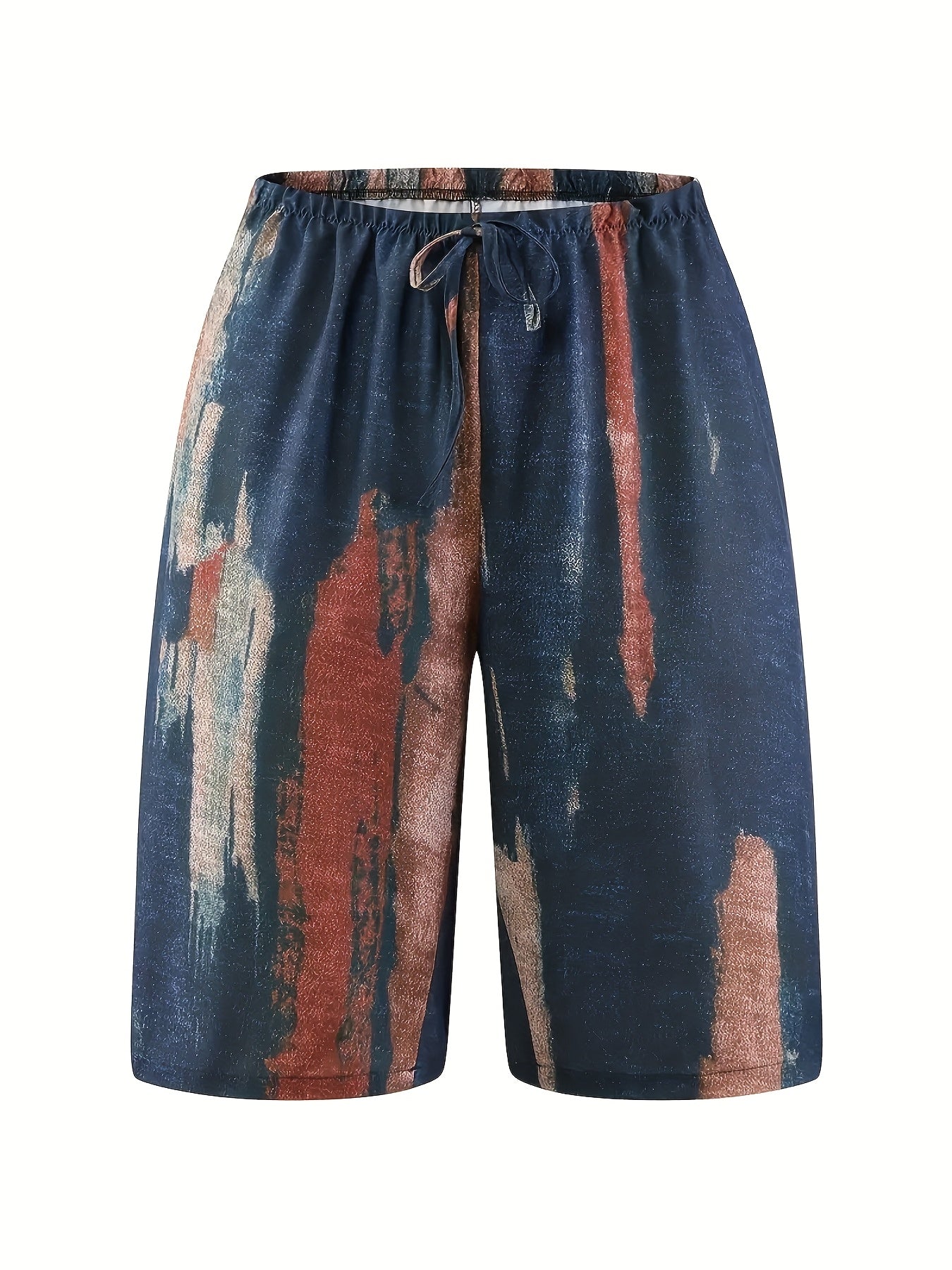 Ayollar uchun katta o'lchamda bosma kundalik shortlar, yozgi polyester, chiziq bilan bog'lanadigan