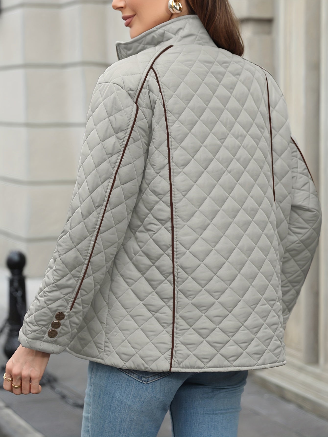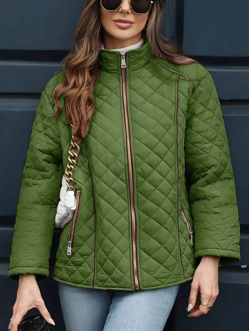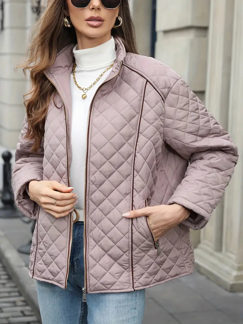Ayollar uchun plussiz o'lchamdagi to'quv kurtka, fermuarli yopiq, polyester material, uzun yenglar, bir rangda, kuz/qish tashqi kiyim.