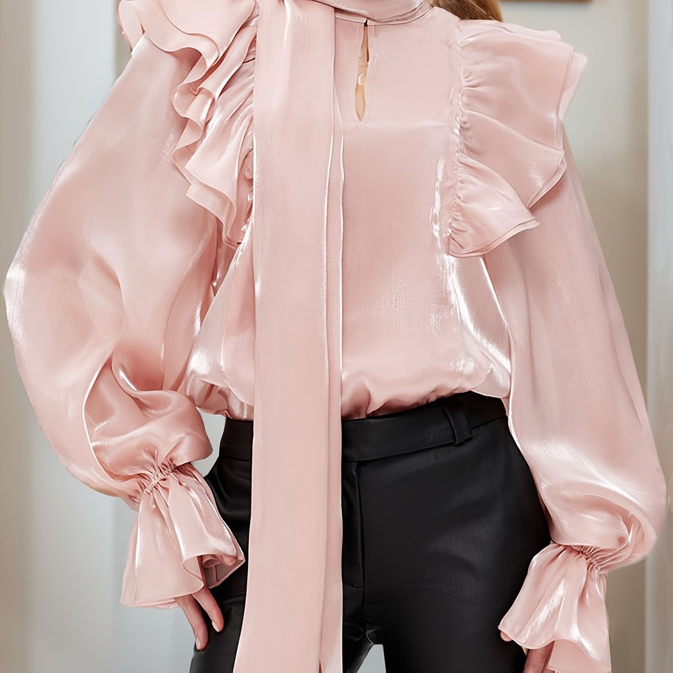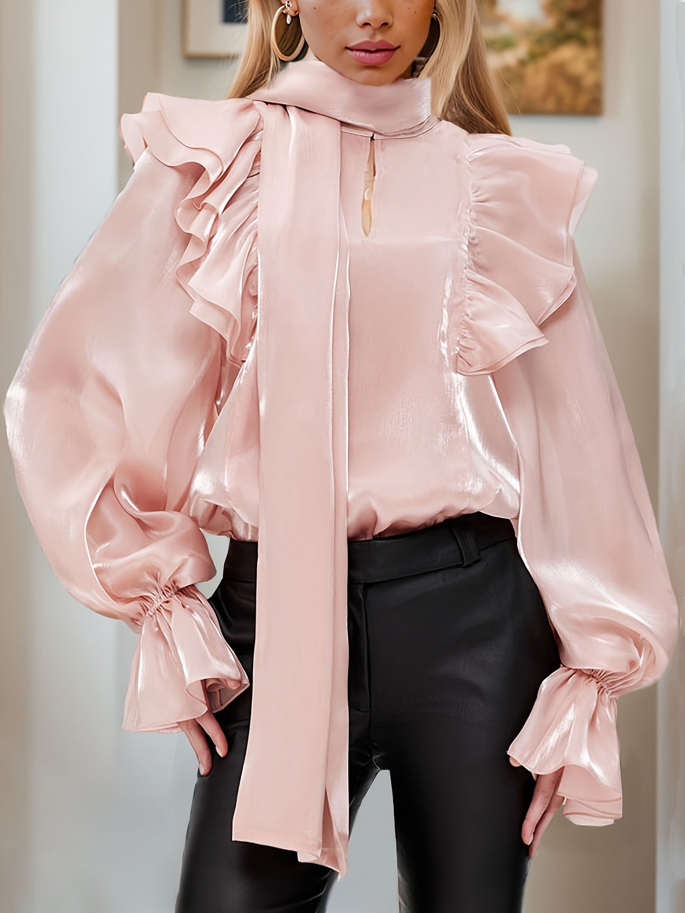 Ayollar uchun katta o'lchamli ruffle qirqilgan mock neck bluz uzun qolli bahor-yoz