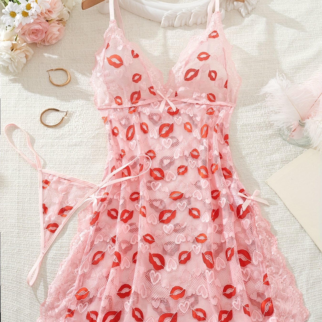 Ayollar uchun katta o'lchamli shaffof lab bo'yoqli spagetti slip to'plami, tikilgan mato
