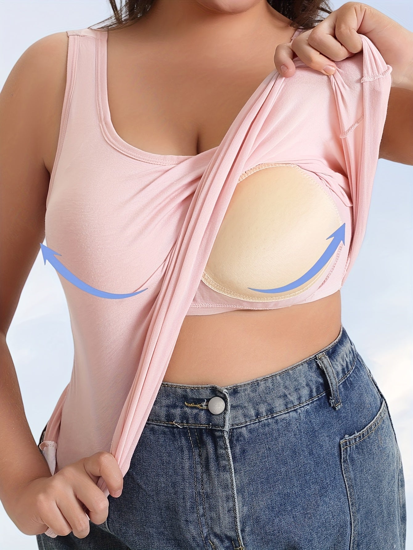 Women’s Plus Size Sleeveless Athletic Tank Tops with Built-In Bra Rayon Blend