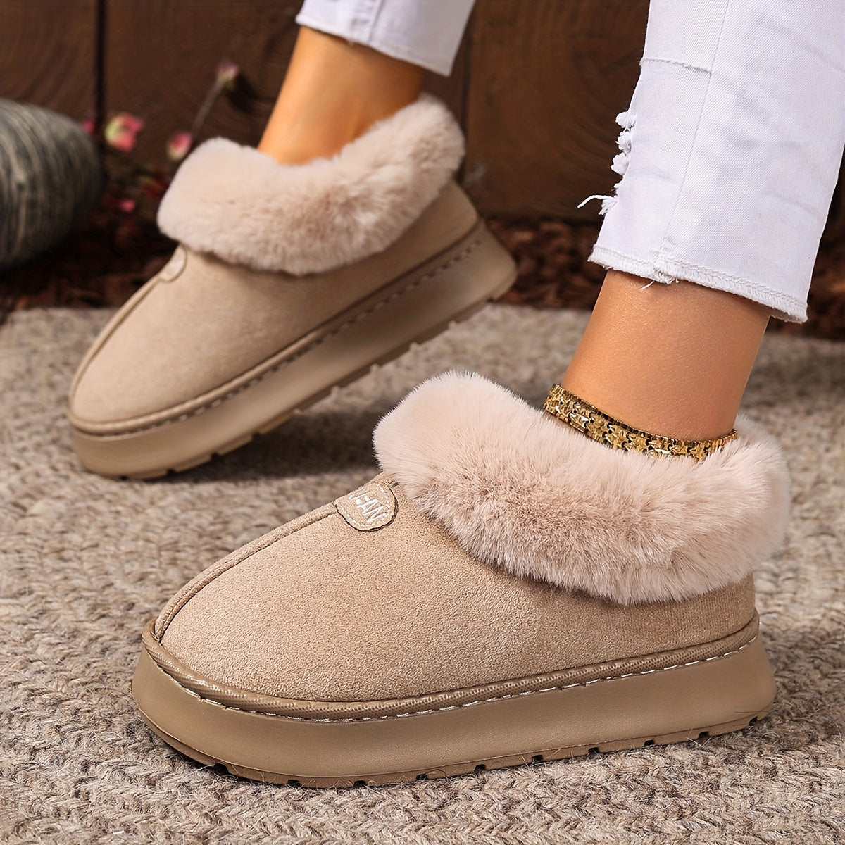 Ayollar uchun mo'ljallangan qalin oyoq kiyimlar, kuz-qish uchun issiq va qulay, qalin tagli, qulay indoor poyabzal