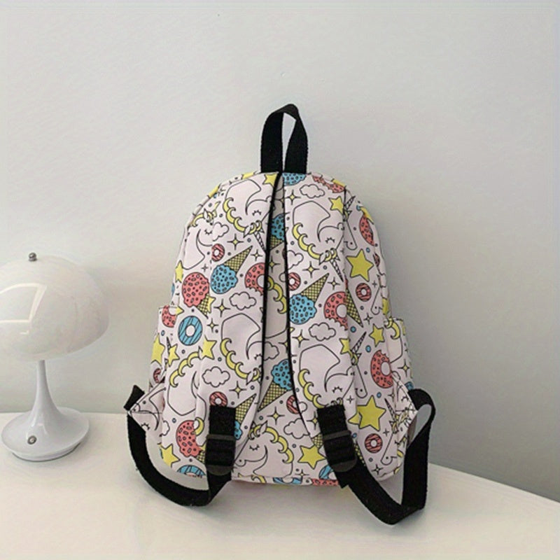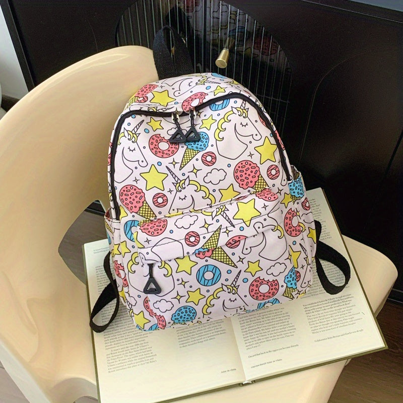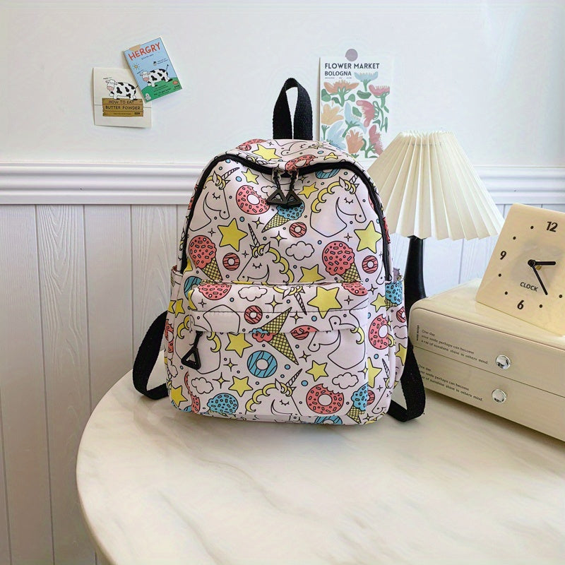 Ayollar uchun maktab ruksak, multfilm unicornlar bosma, sozlanadigan zip, va yuqori sig'im.