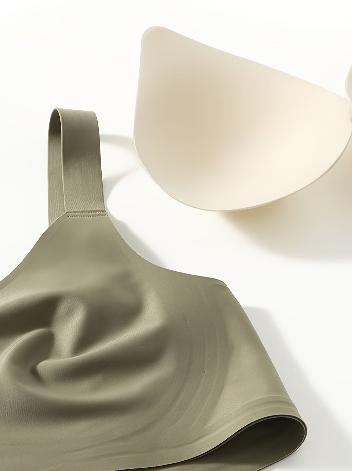 Ayollar uchun tikuvsiz simsiz sport brassi, yumshoq qo'llab-quvvatlash, olib tashlanadigan yostiqlar, naylon/spandeks aralashmasi, yoga tank top uslubi.