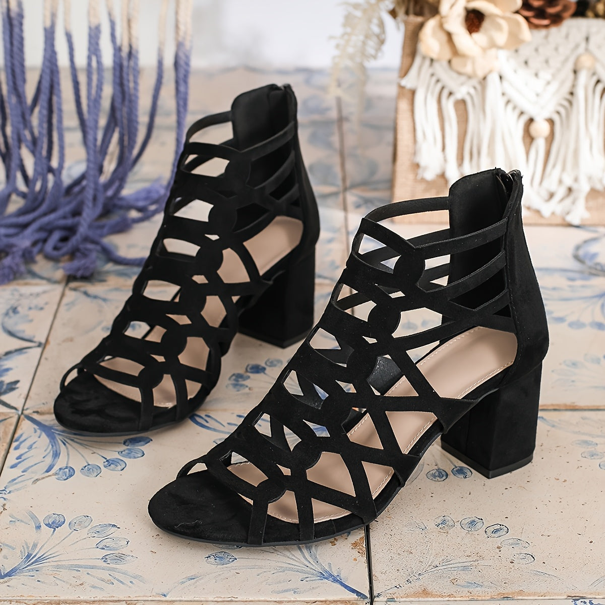 Ayollar uchun sexy qora yuqori poshnali poyabzal, kesilgan dizayn, ochiq barmoq, orqa fermuar, flanel yuqori qismi, PU astar va kauchuk taglik.