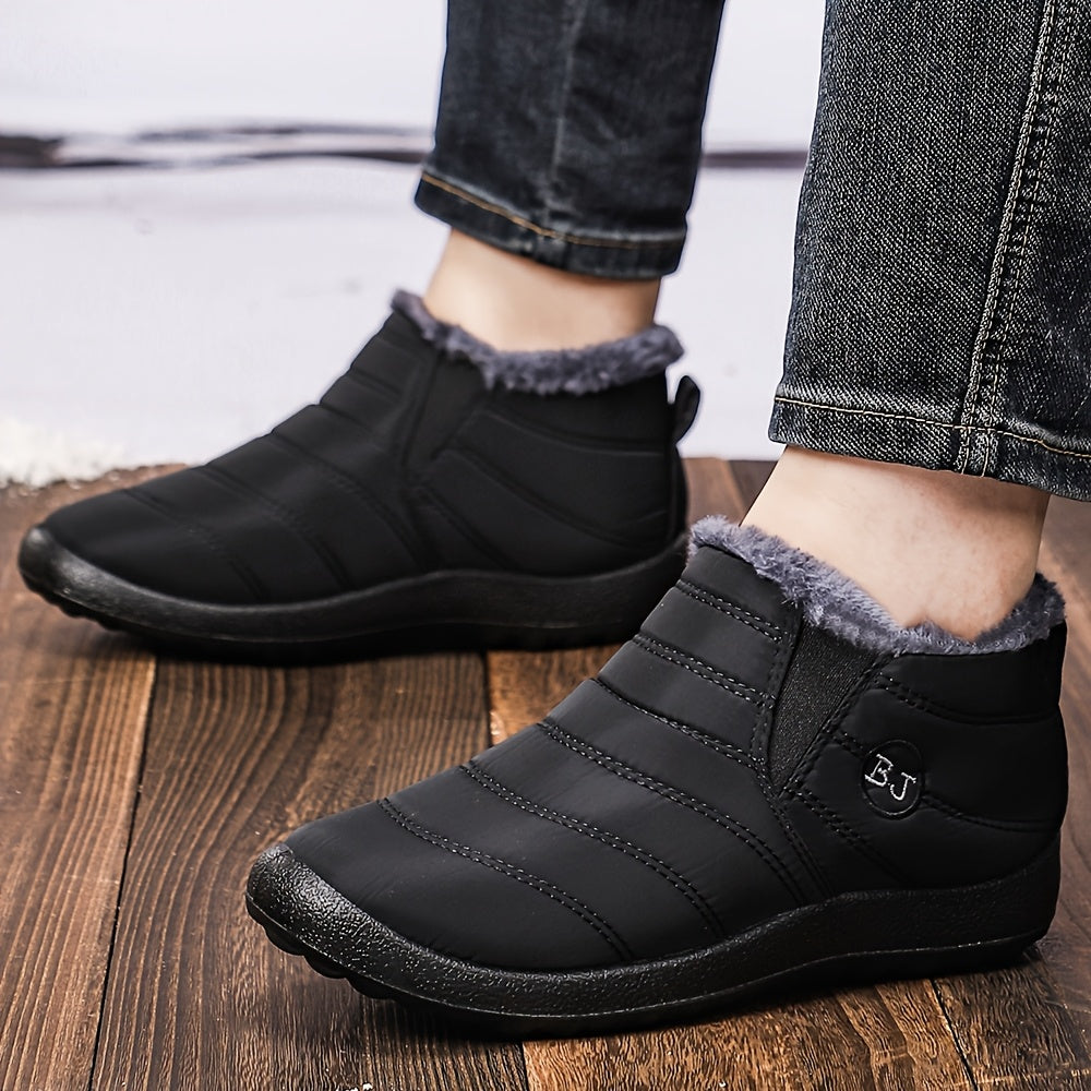 Women's Slip-On Ankle Boots Black Soft Fabric Plush Lining Comfortable Flat