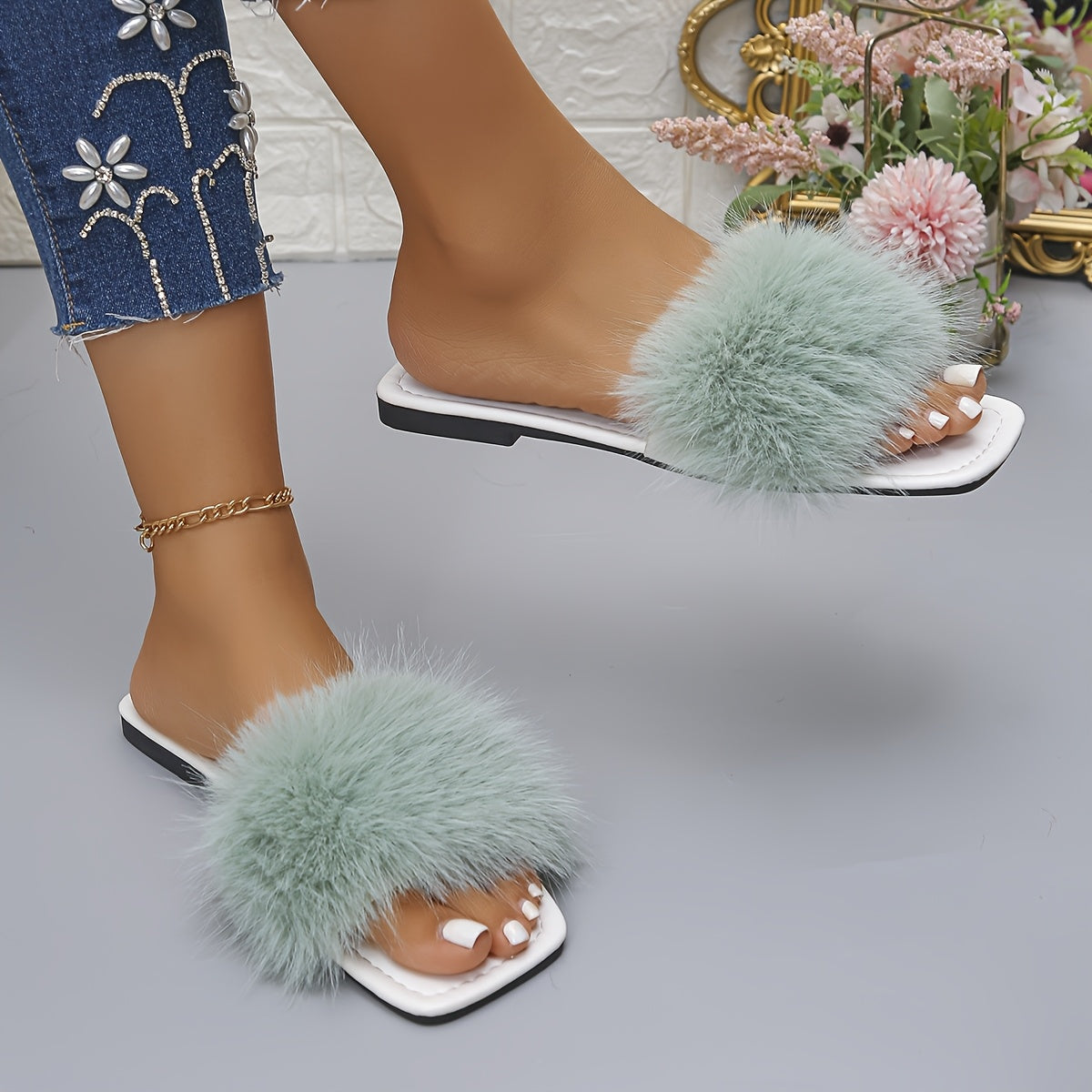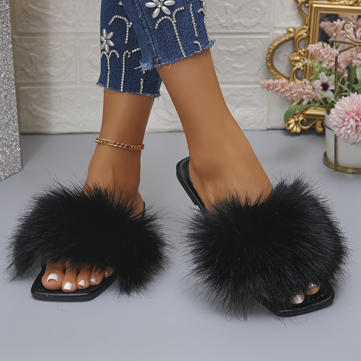 Ayollar uchun ochiq-oyoq, yopilmaydigan, faux mo'ynali chetli maktablar, mikrofiber, rezina tagli