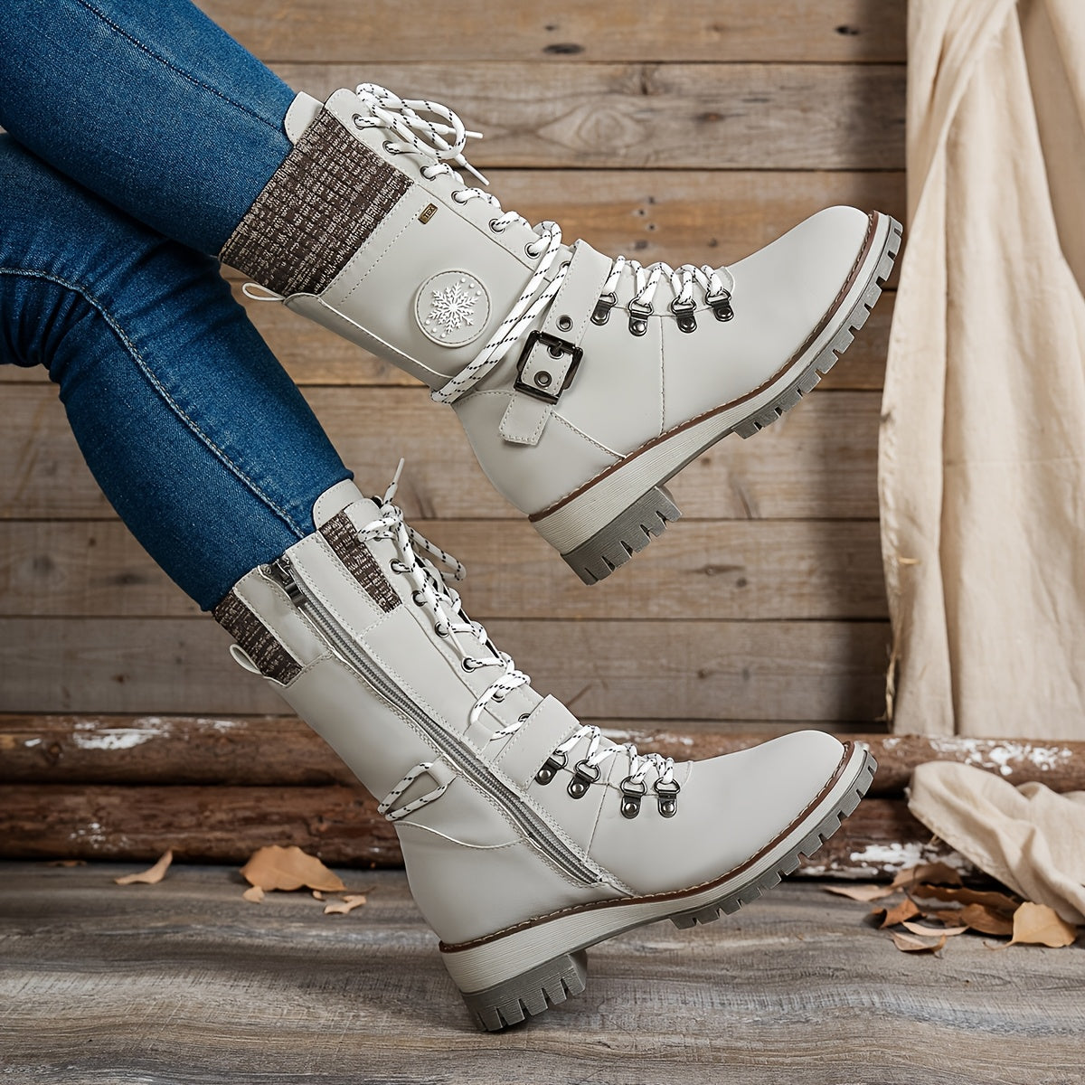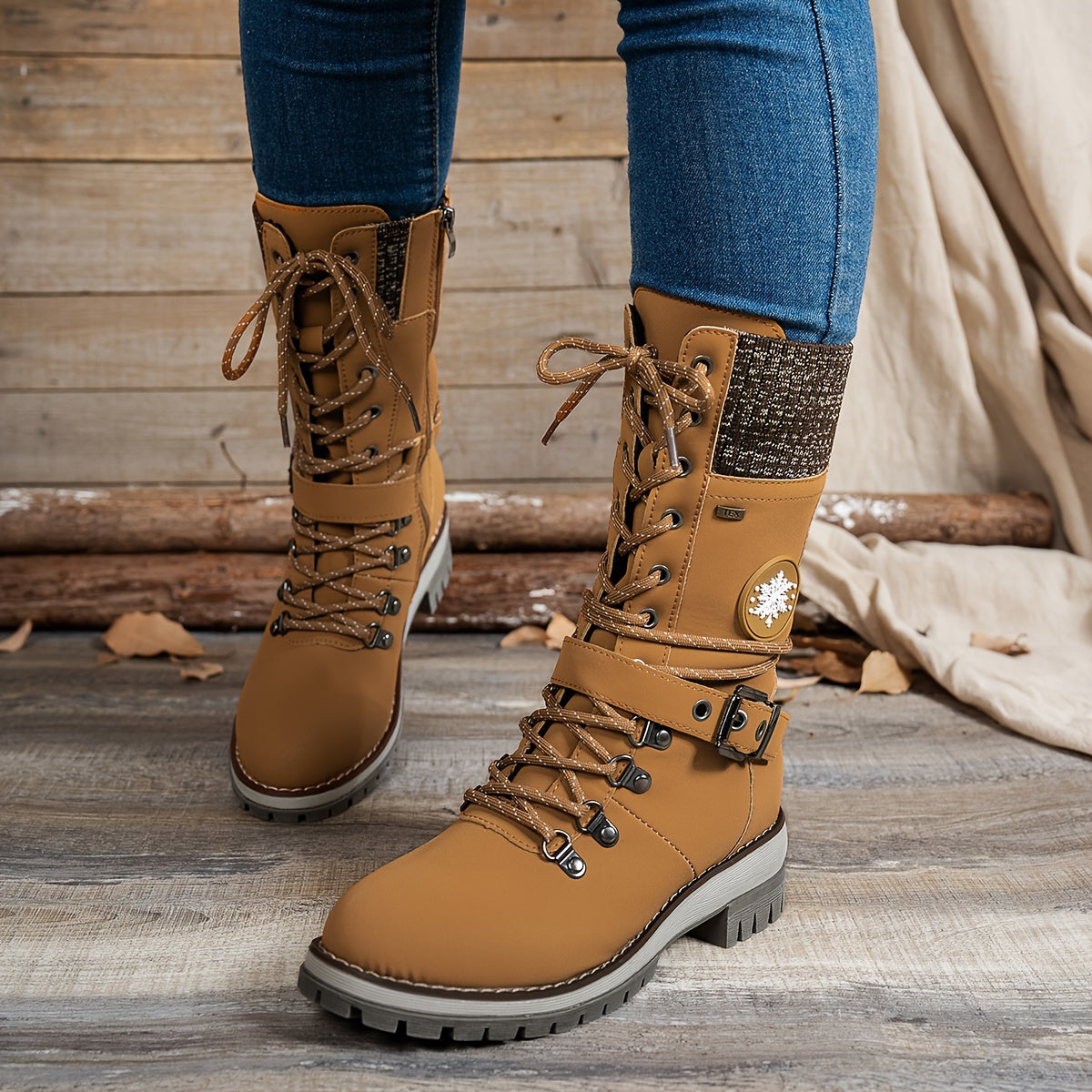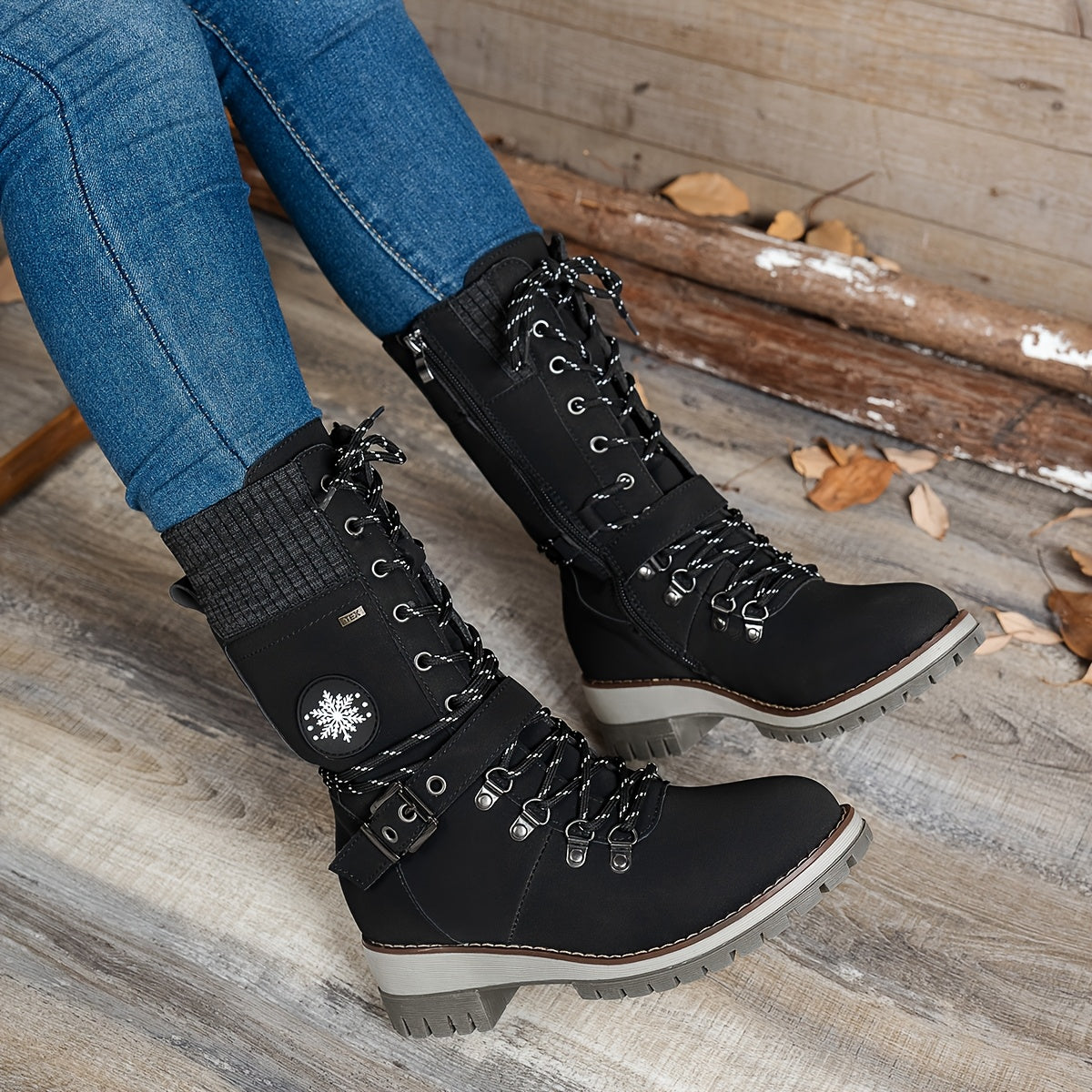 Ayollar uchun bir rangli to'qilgan qirra o'rta tizza poyabzal, yon zippersi va tokchasi bilan