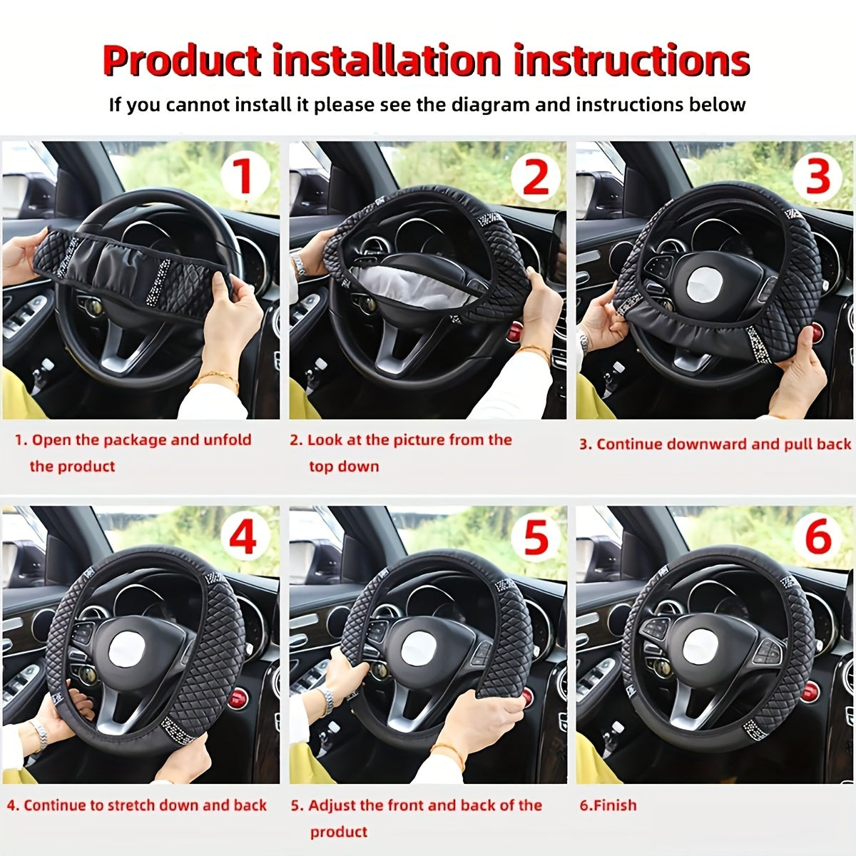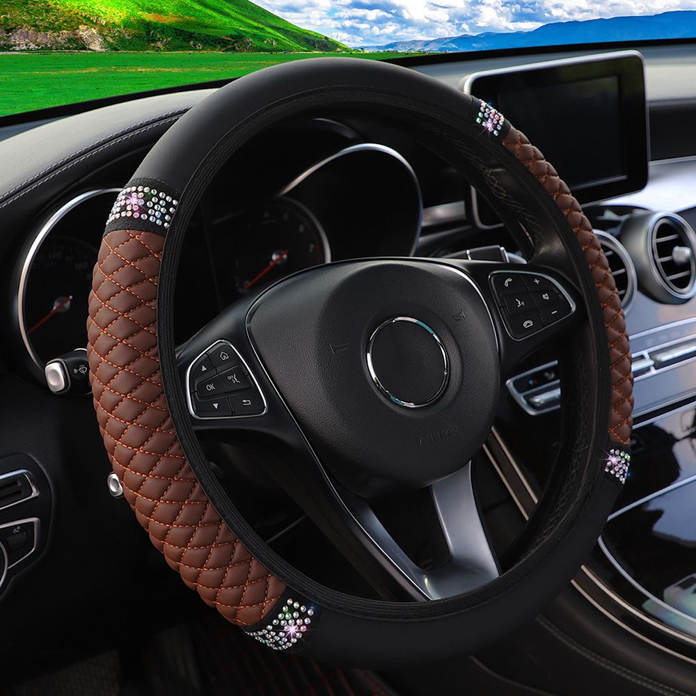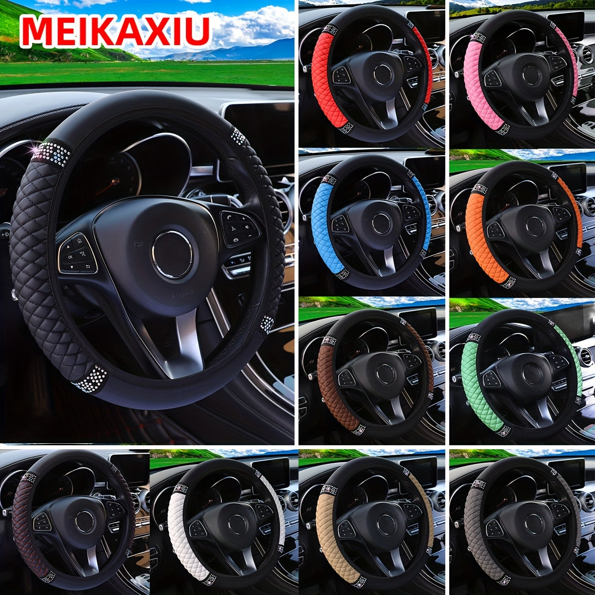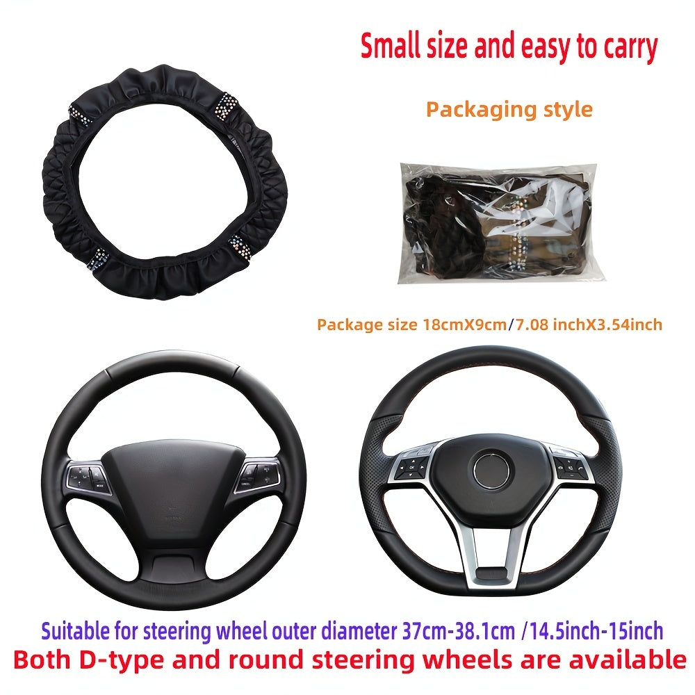 Ayollar uchun porloq rhinestone PU charm bilan qoplangan g'ildirak qopqog'i, qora, 36.8-38.1cm