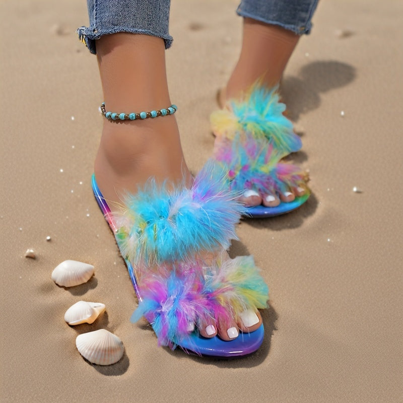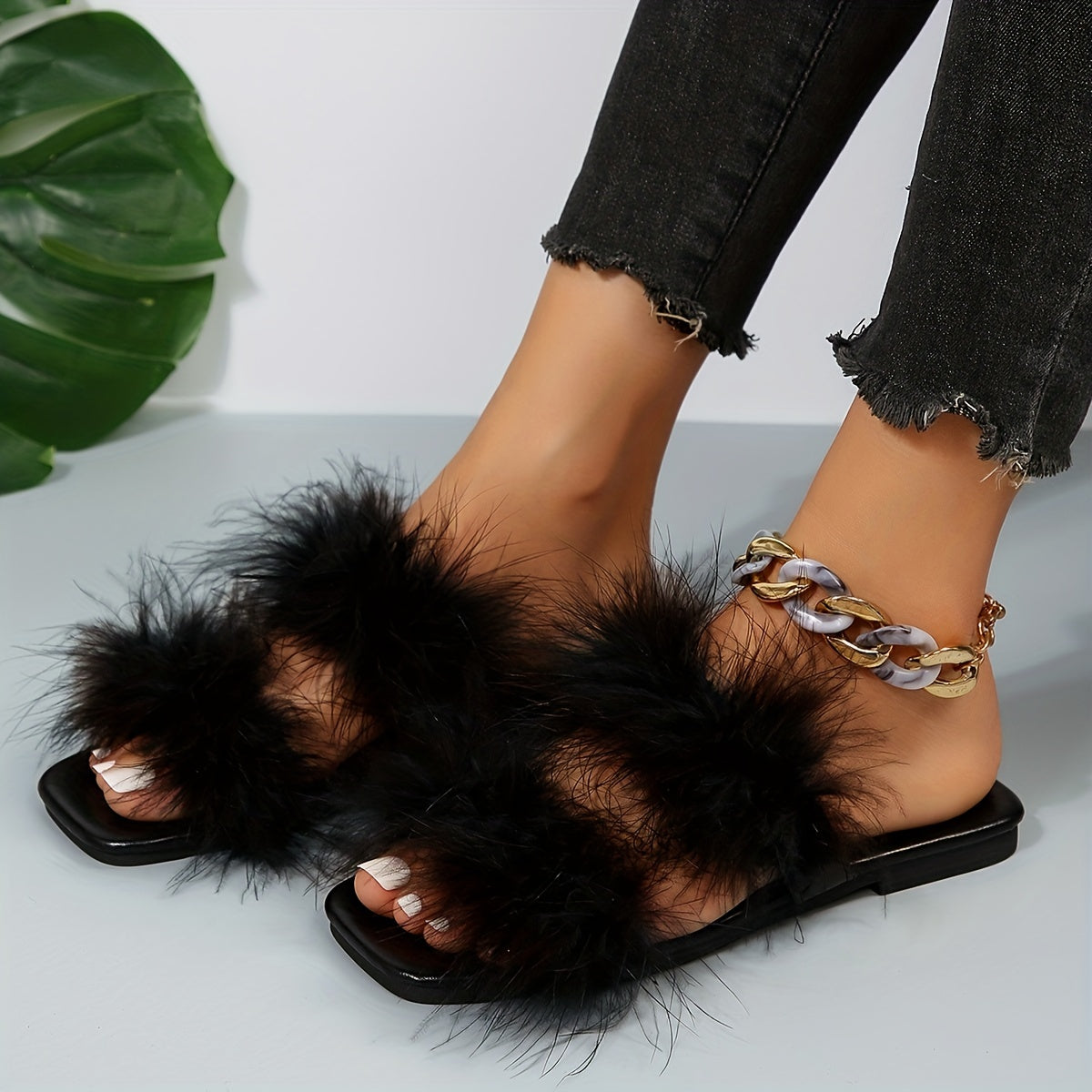 Ayollar yozgi tekis slaydlar, bir rangli mato bilan, qattiq dizayni, orqa va barmoqli sandal.