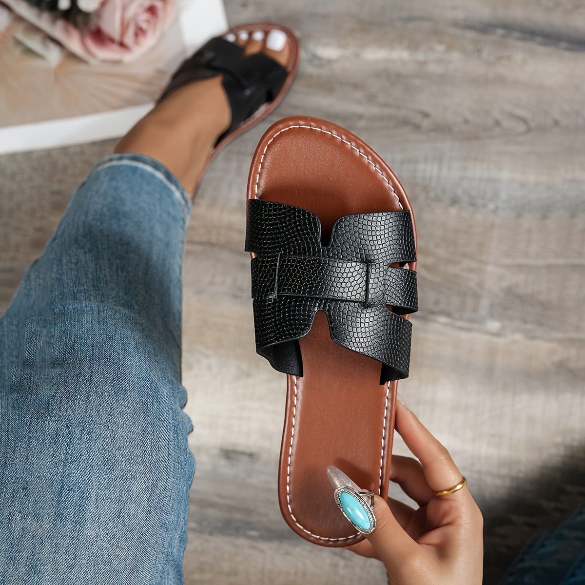 Ayollar yozgi sandallari, tekis rezina taglik, kundalik flip-floplar, qora va jigarrang