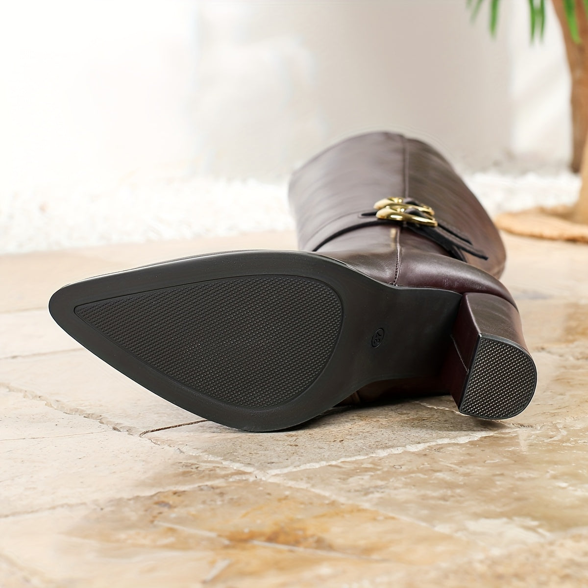 Ayollar uchun sintetik charmli o'rta uzunlikdagi qoqil va yon zippersi bilan blokli taglikli botinkalar