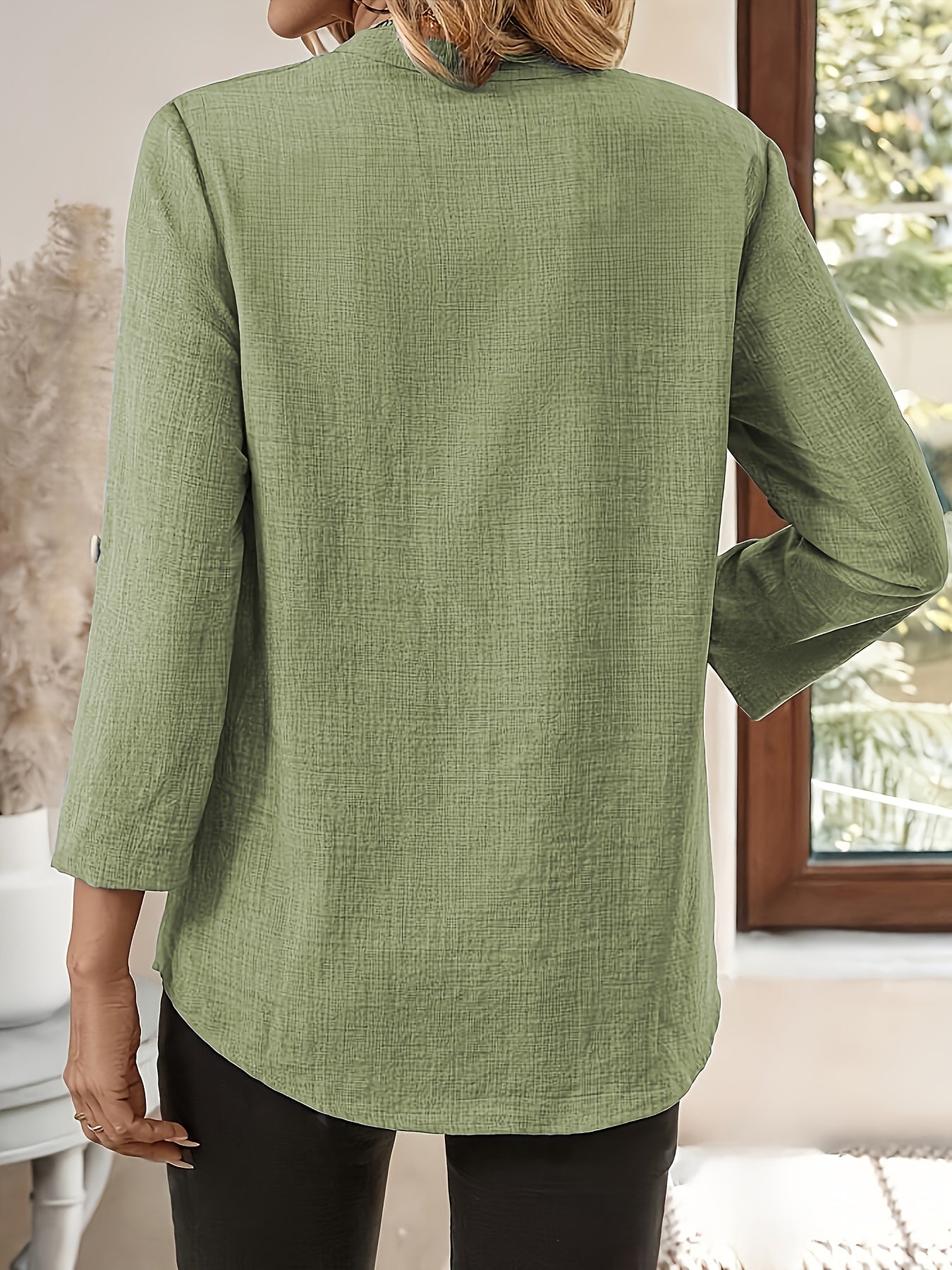 Ayollar uchun V-yuqa uzun qoʻl kofta, polyester, bir rangli, tugma detallari bilan