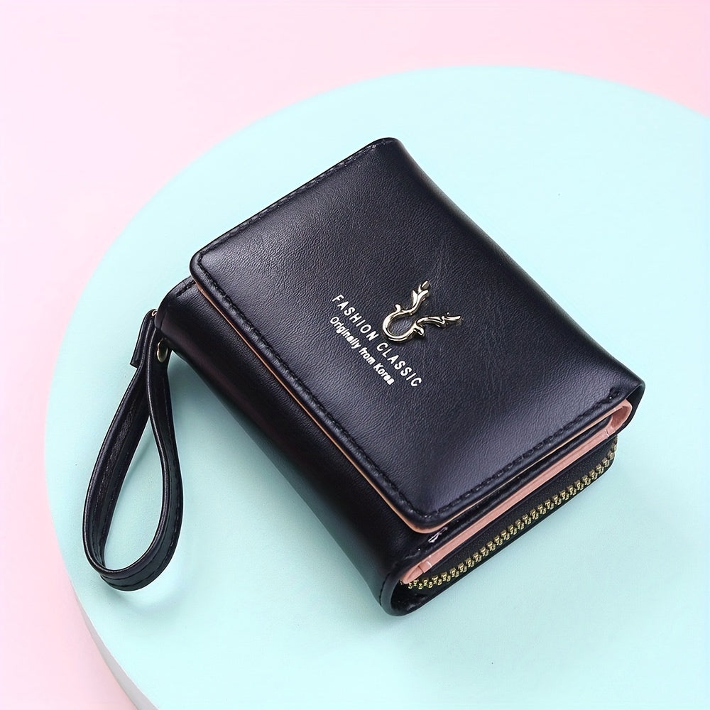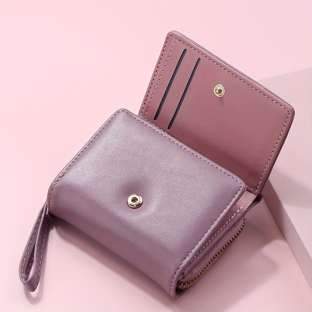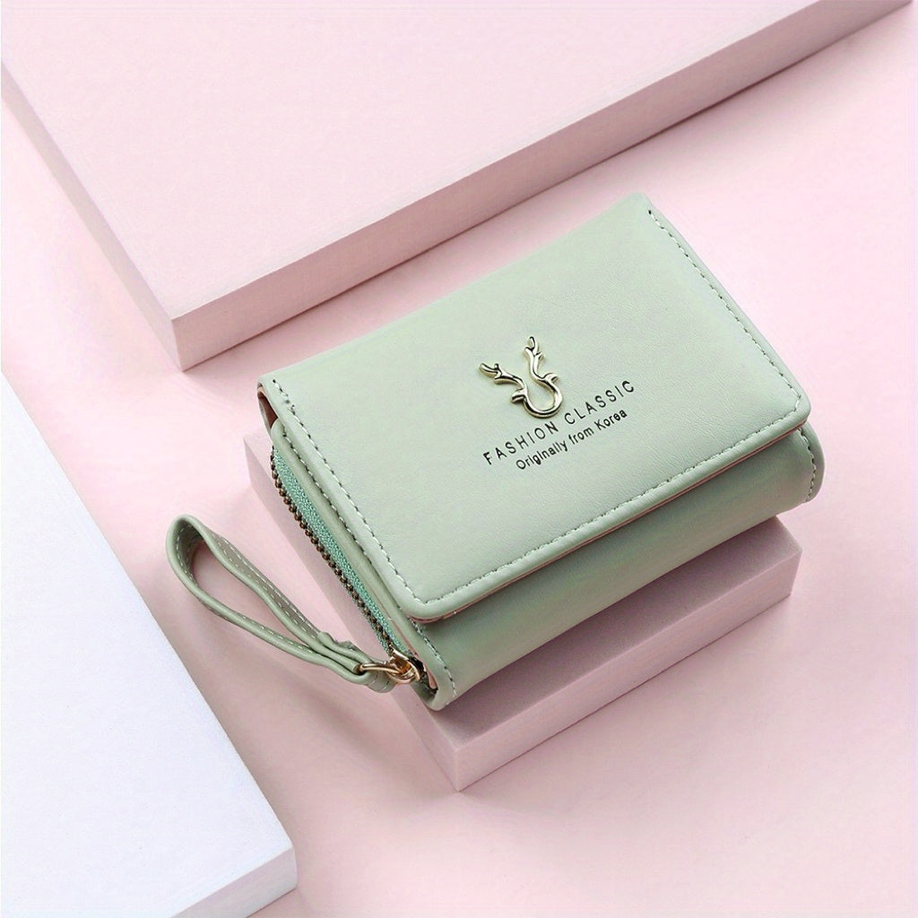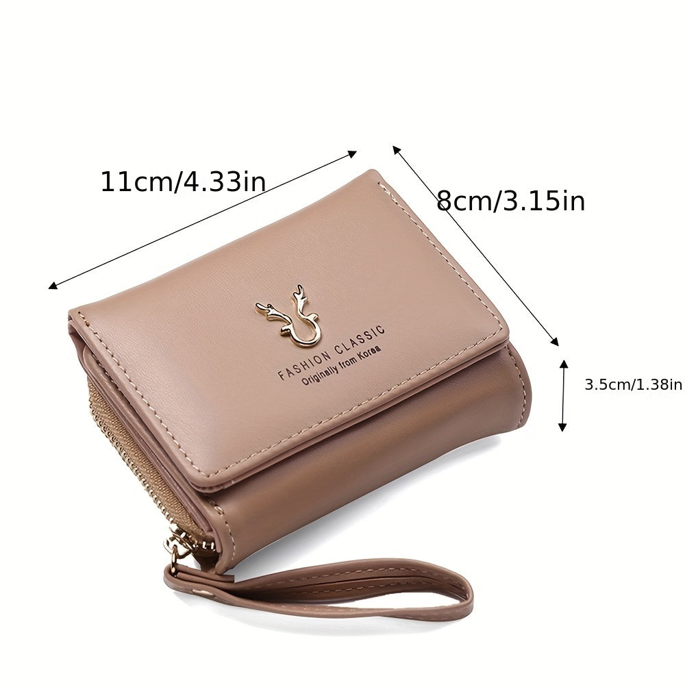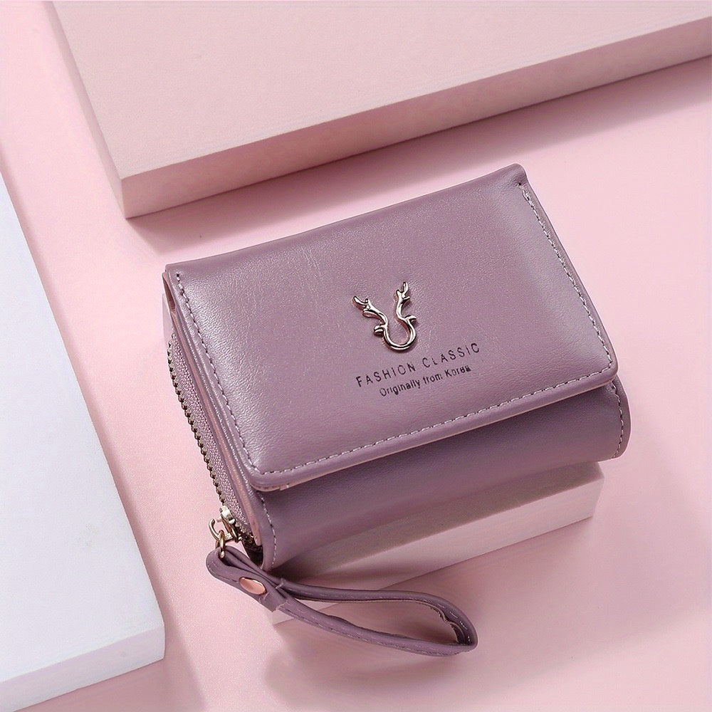 Ayollar uchun ko'p funksiyali minimalist uch qismli qisqa hamyon, tangalar uchun cho'ntak va kredit karta ushlagichi bilan.