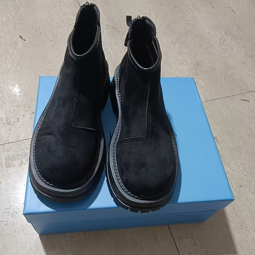 Ayollar uchun vintage ankle botinkalari, mato ustki qismi, dumaloq barmoq, past platforma to'pi, kauchuk taglik, zipper yopilishi, qo'lda yuvilishi mumkin - zamonaviy va ko'p qirrali.