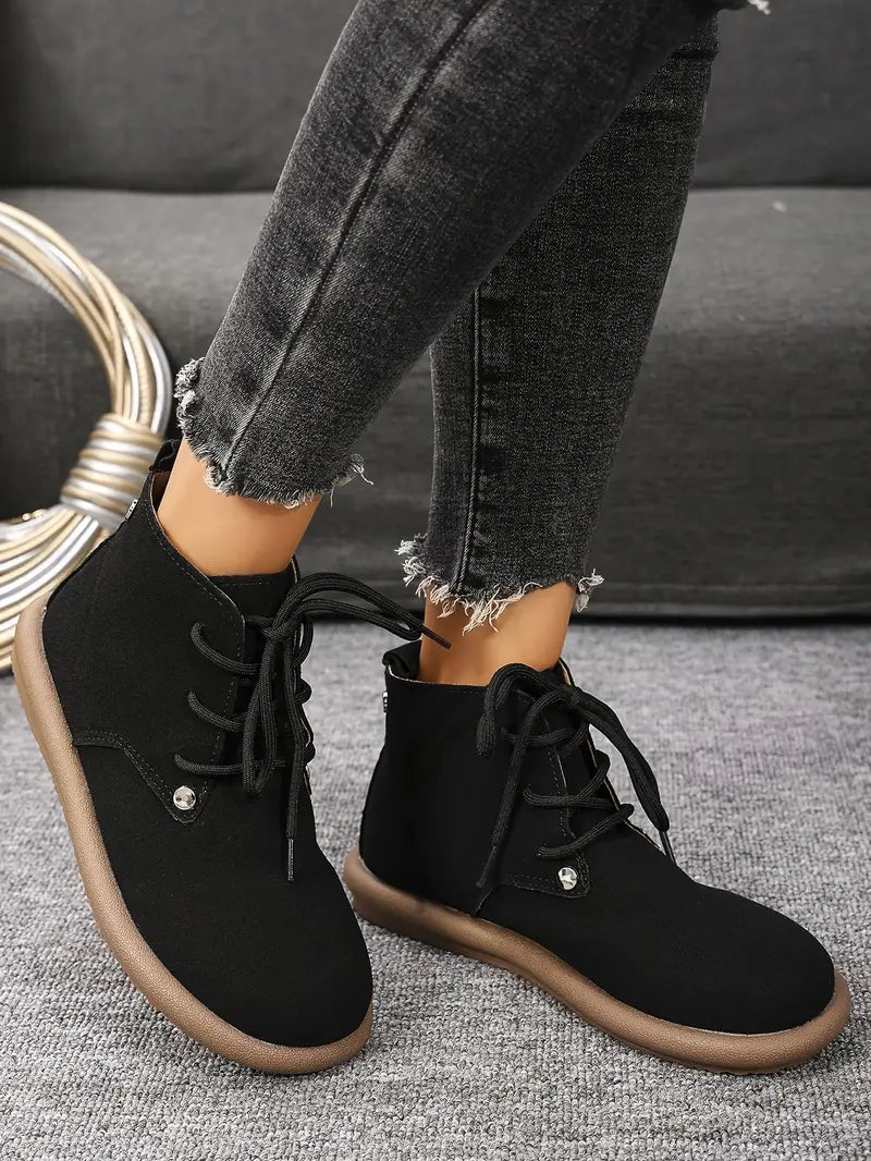 Women's Vintage-Inspired Thick Sole Combat Boots Lace-Up Ankle Brown