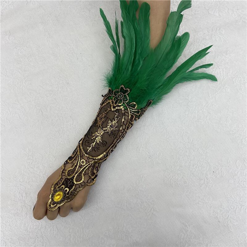 Ayollar uchun vintage uslubidagi barmoqsiz qo'lqoplar, dantel yenglar, sun'iy jun bezak, nafis oltin tikuv, gotik partiya yoki prom kiyimlari uchun mukammal