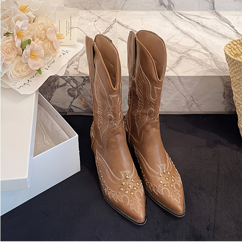 Ayollar uchun G‘arbiy Qushqorli Oyoq kiyimlari, Oson kiyiladigan, Jigarrang, O‘rtacha tagli, Tishlamaydigan, Guma taglik