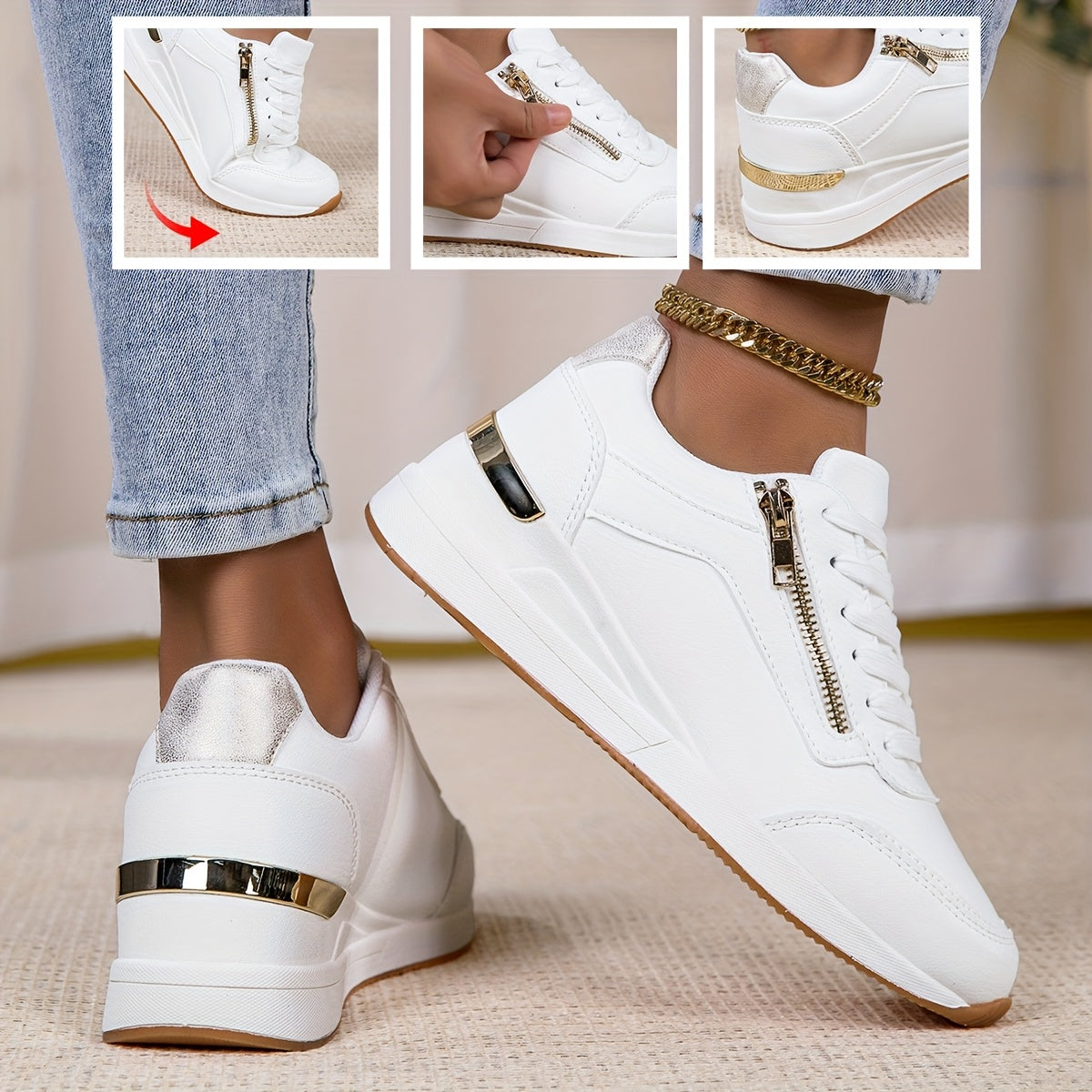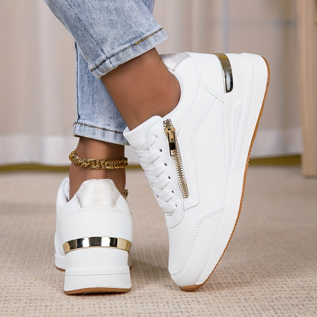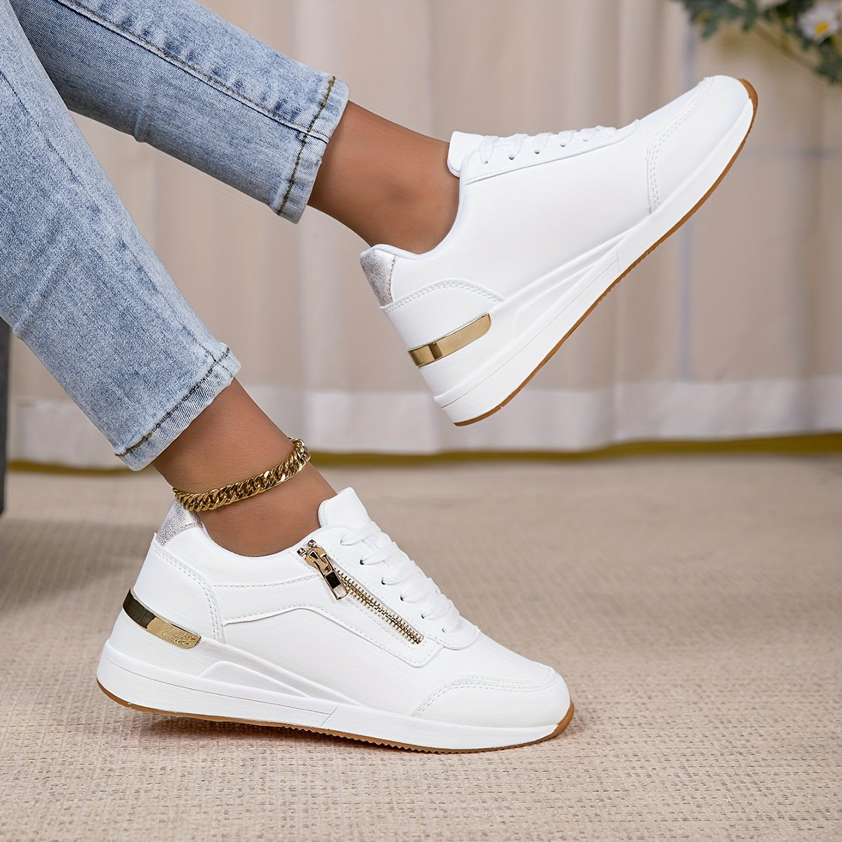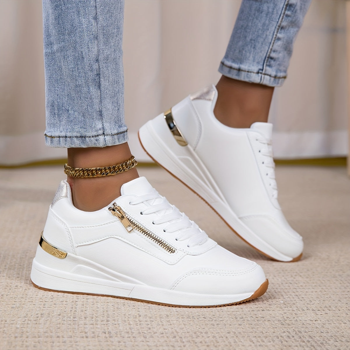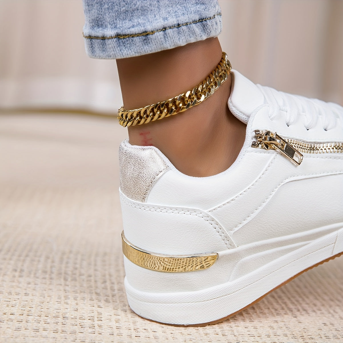 Ayollar uchun oq rangli kundalik sport poyabzali, oltin detallari bilan, sirpanishga qarshi TPR taglik