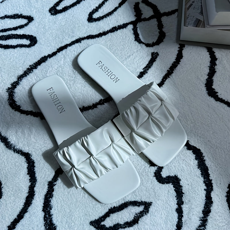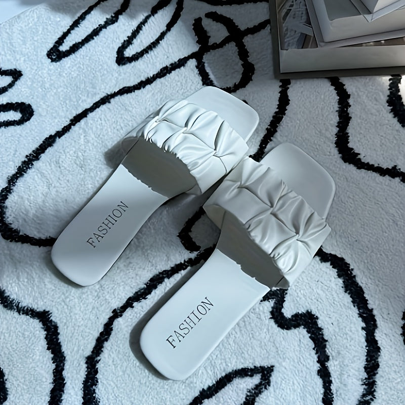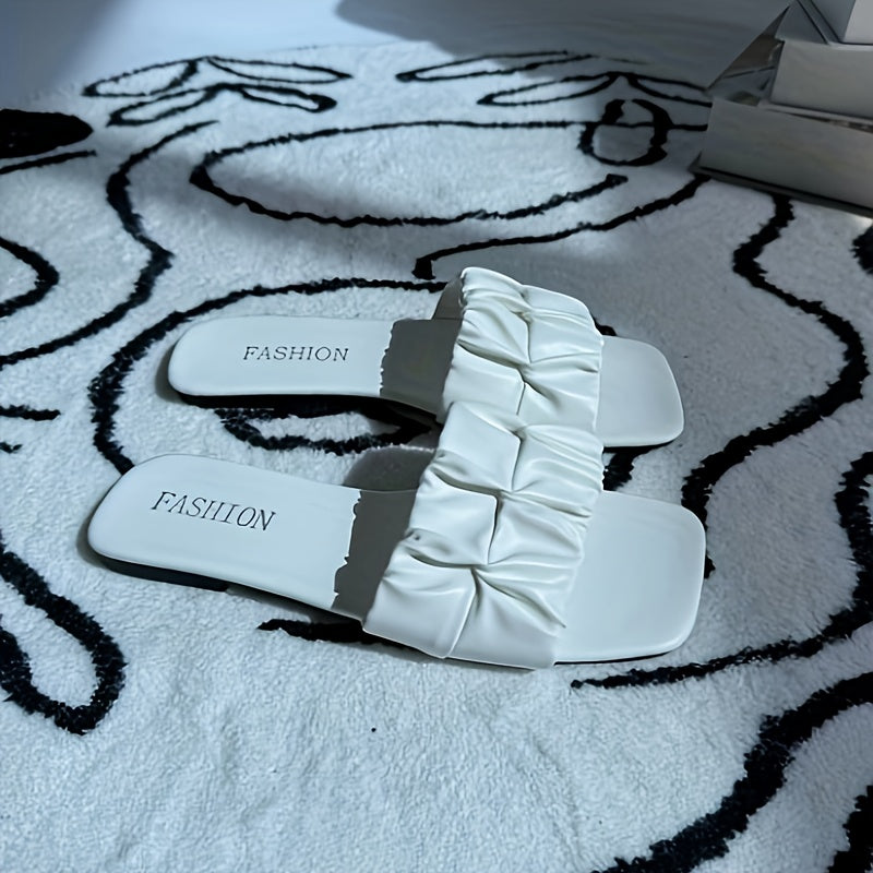 Ayollar uchun oq rangli tekis shlyapa, qulay yozgi kundalik poyabzal