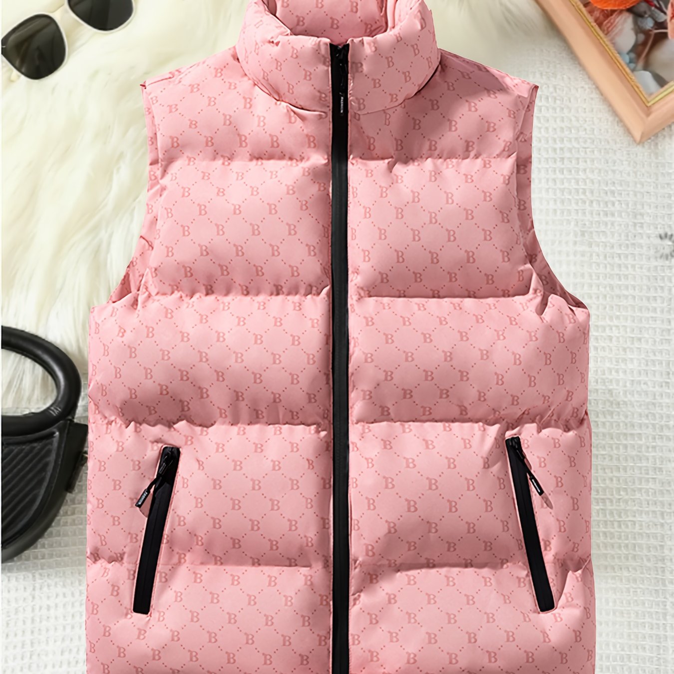 Ayollar uchun qishki bezsiz yengsizlik kamzul kurtka stand collar zip pockets letter print