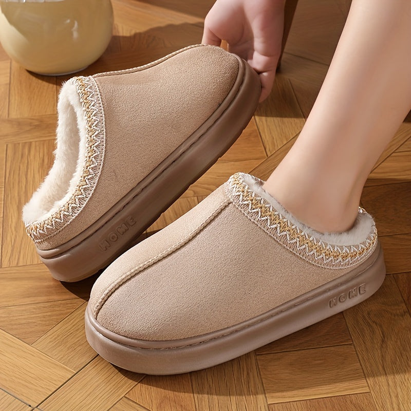 Ayollar uchun qishki yopish mumkin bo‘lgan ichki va tashqi foydalanish uchun bezatilgan tirkamali shippaklar, yopish uchun yopishtirilgan, shoxli qoplamali, qora va jigarrang