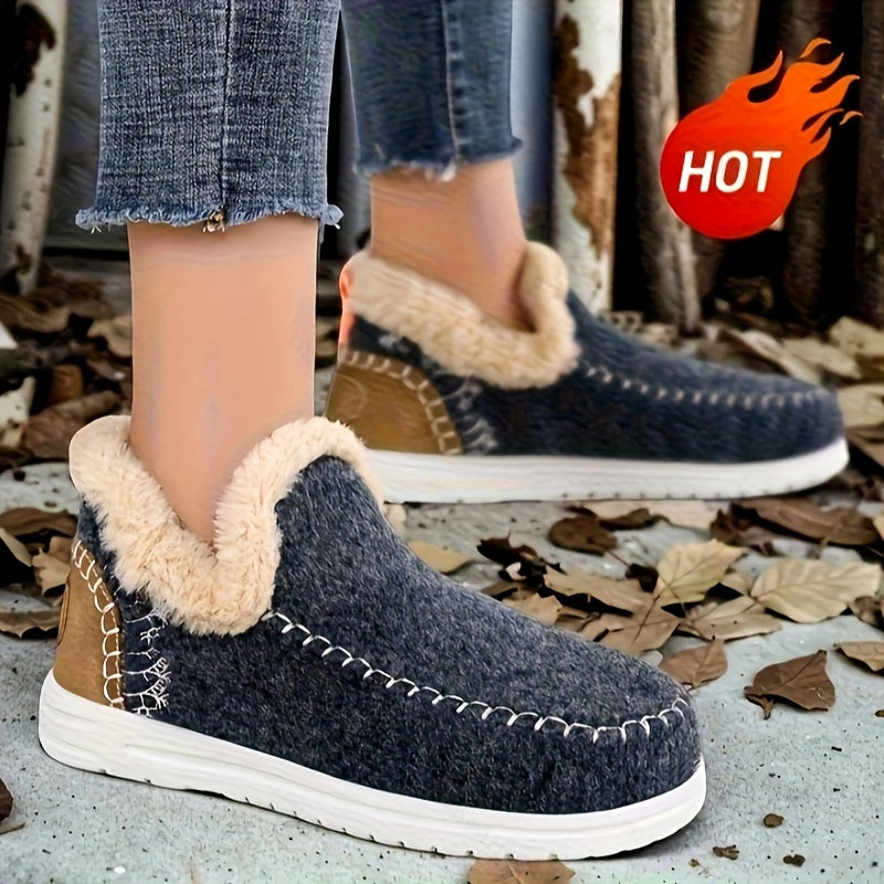 Women's Winter Snow Boots Fleece Lined Ankle Slip-On Waterproof Rubber