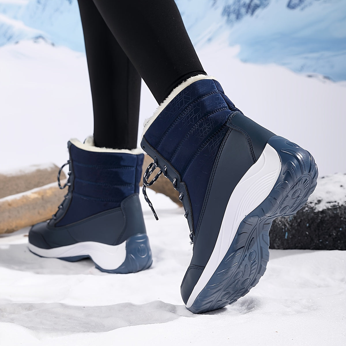 Ayollar uchun qishki qorli botinkalar, issiq mo'ynali ichki qismi, tizzaga chiqadigan platformali, qora