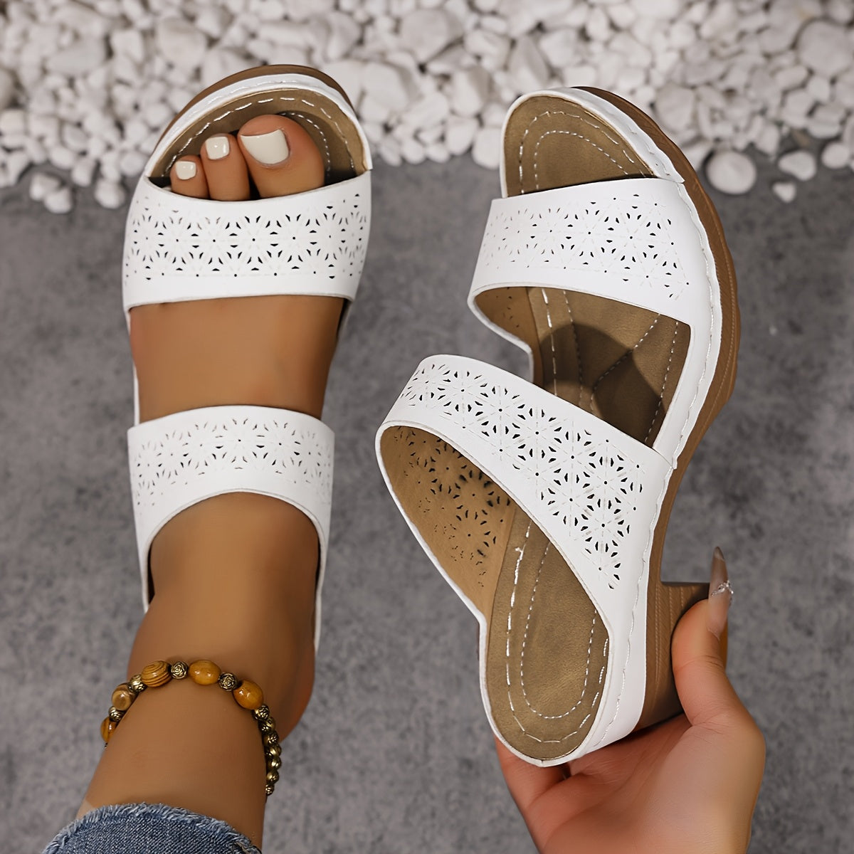 Ayollar uchun kengaytirilgan sandallar, sun'iy charm, ochiq barmoqli, platformali, plyaj uchun kundalik kiyim