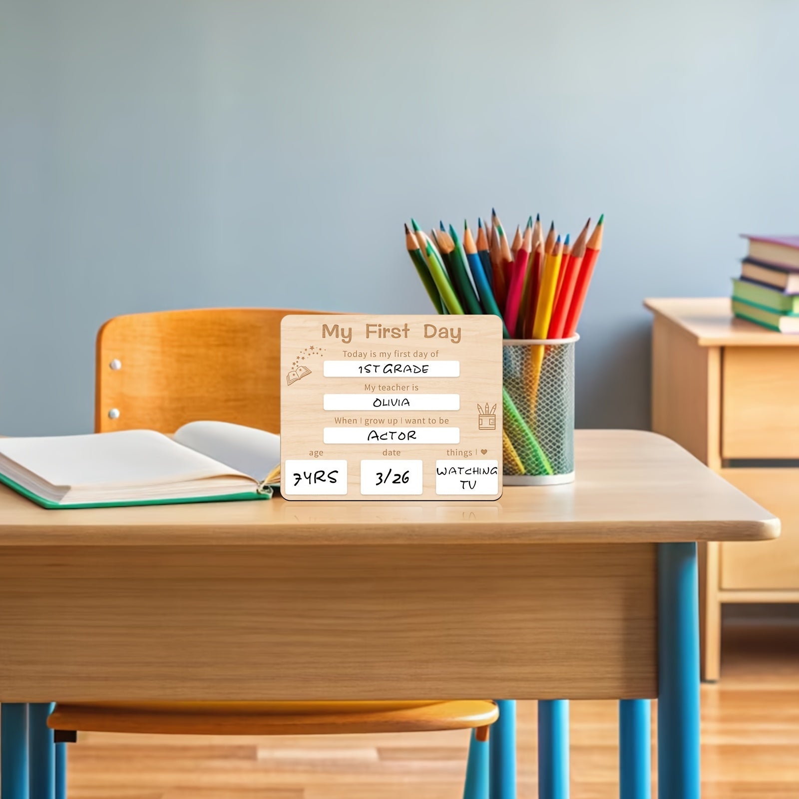 Maktabga qaytish xotiralari uchun yog'och mileston taxtasi, o'g'il va qizlar uchun oq rangda qayta ishlatiladigan fotosurat aksessuari.
