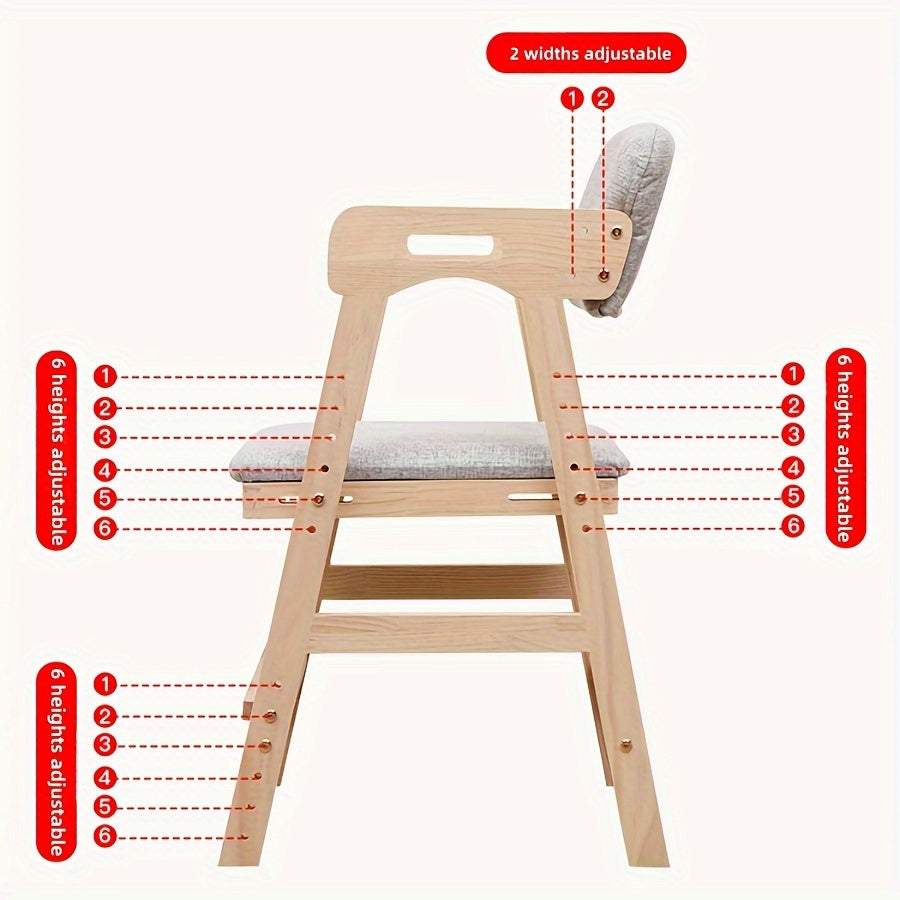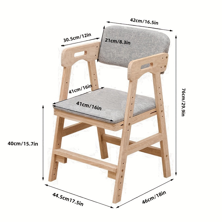 Balandligi sozlanadigan va olib tashlanadigan yostiqli yog'och ofis stuli, o'qish va ovqatlanish uchun ideal. Silliq qoplama bilan ajralib turadi.
