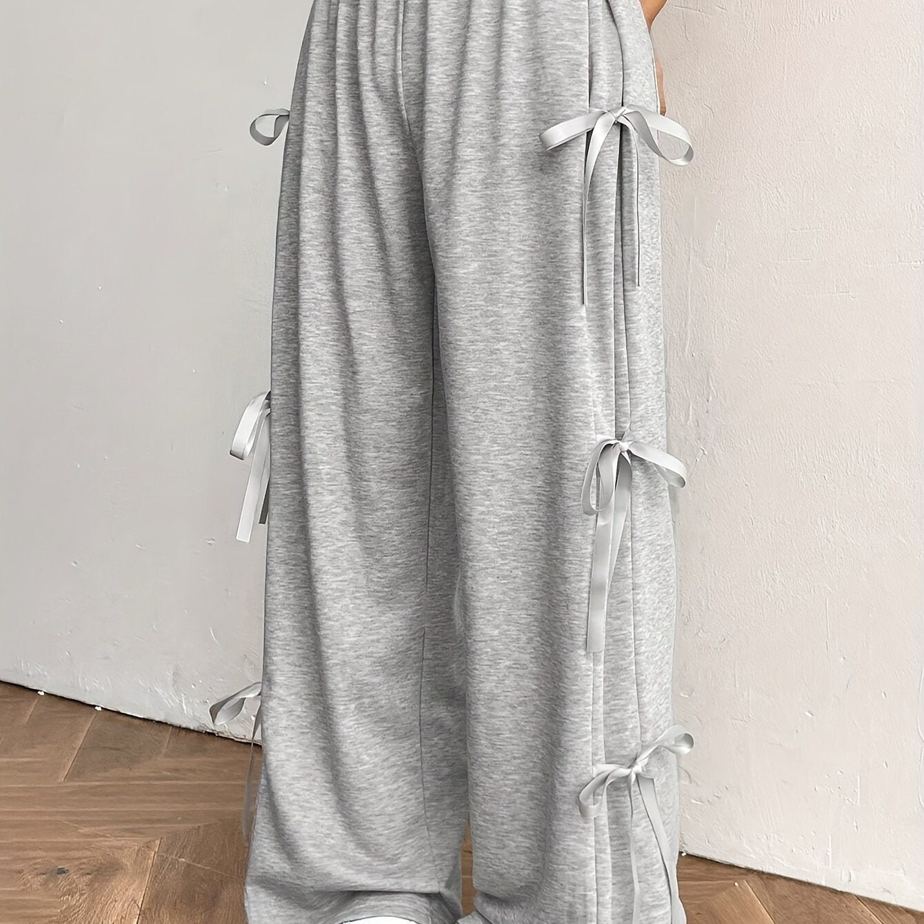 Y2K uslubidagi ayollar uchun poliester keng oyoq shimlar, bog'ich detali, bir xil rang, bahor/kovak uchun tasodifiy sport shimlar