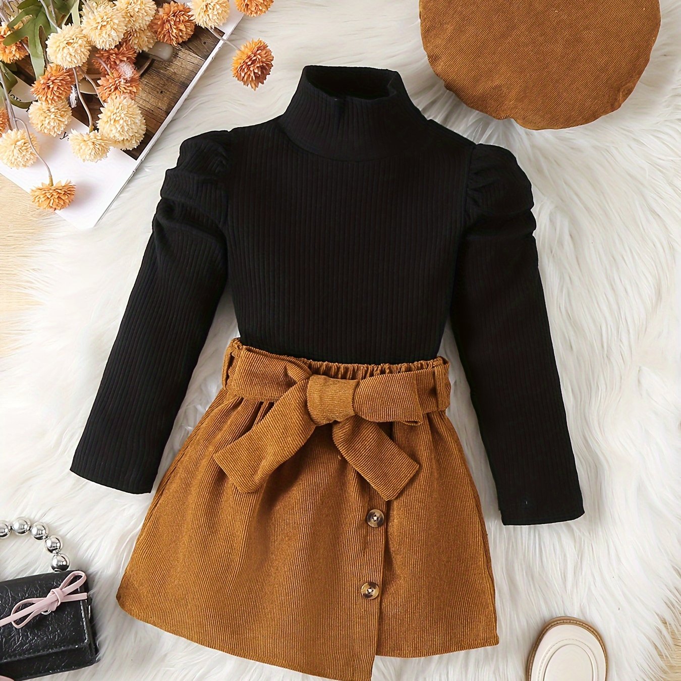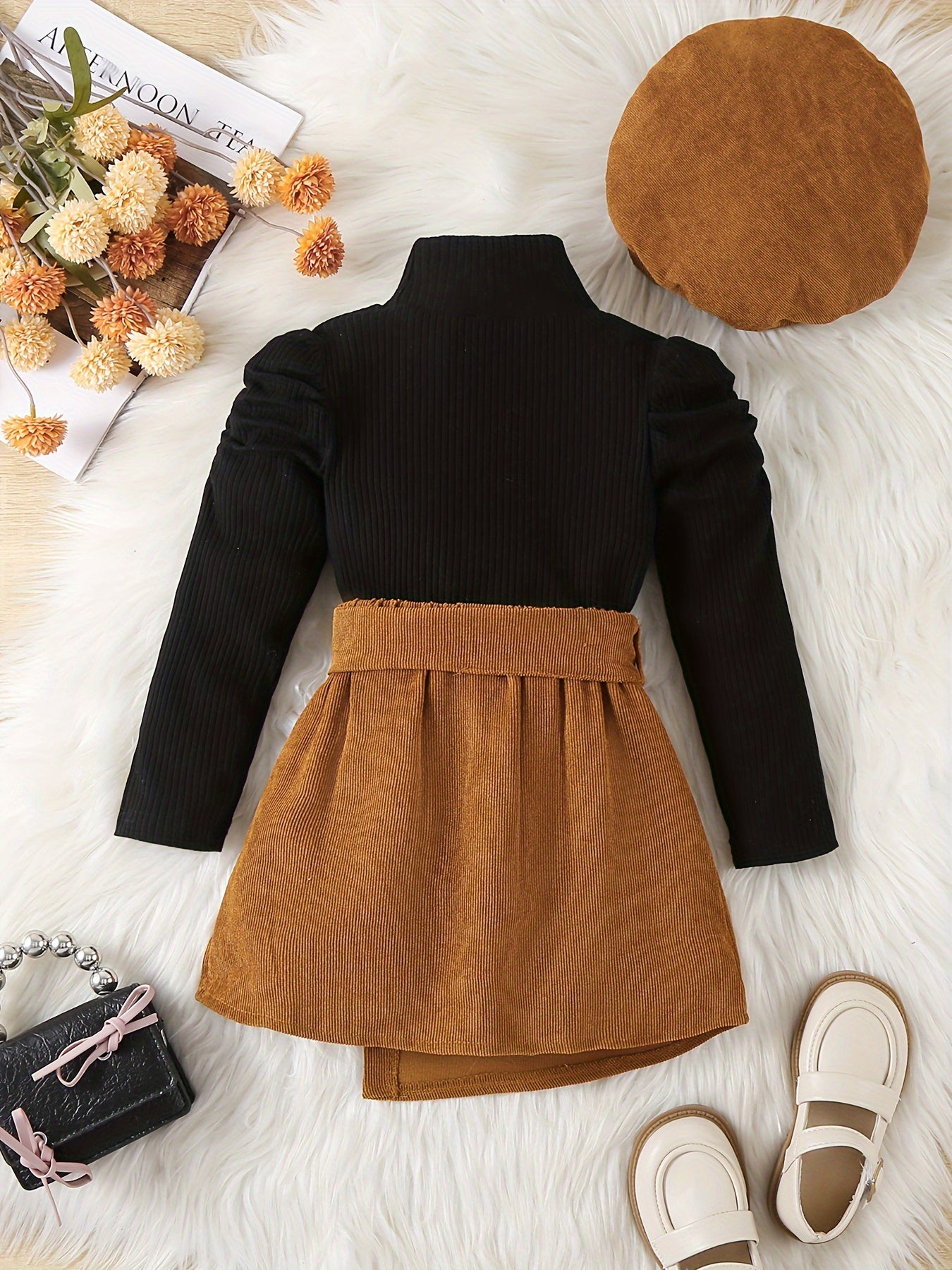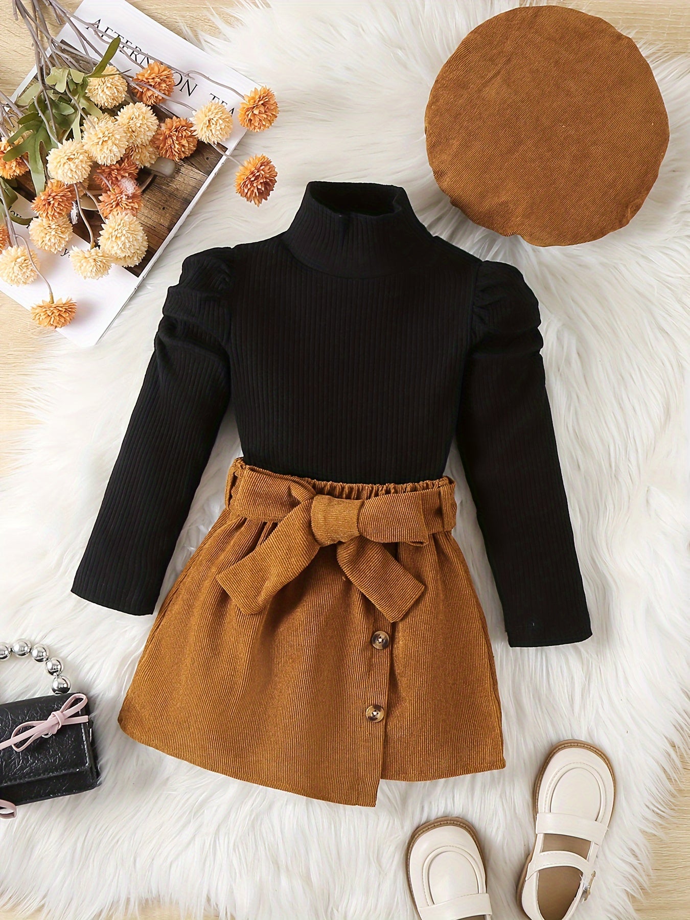 Yosh Qiz Yuqori Rahbar 3 ta to'plam: Qorin T-shirti, Korduroy Kamarli Yupqa, Shlyapa