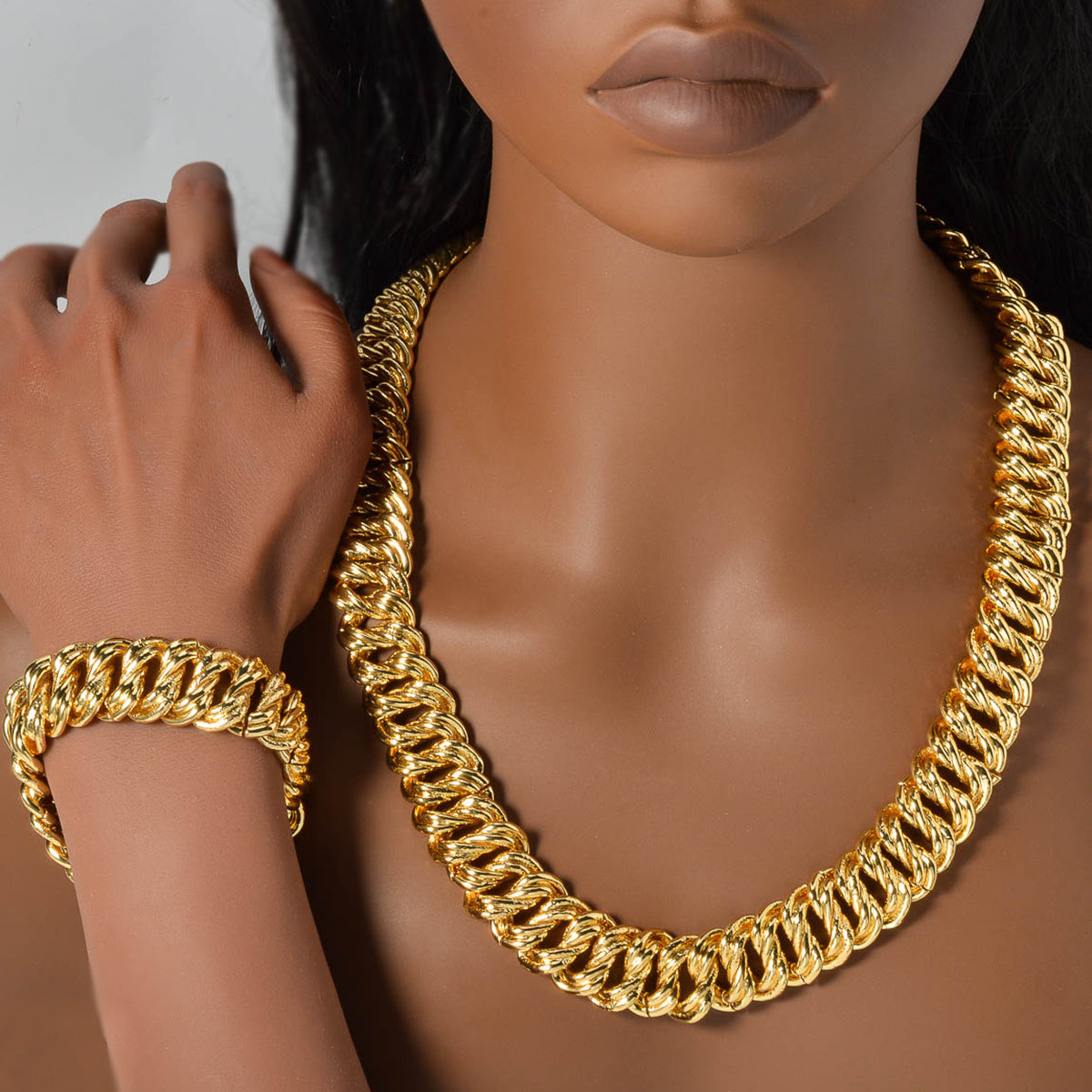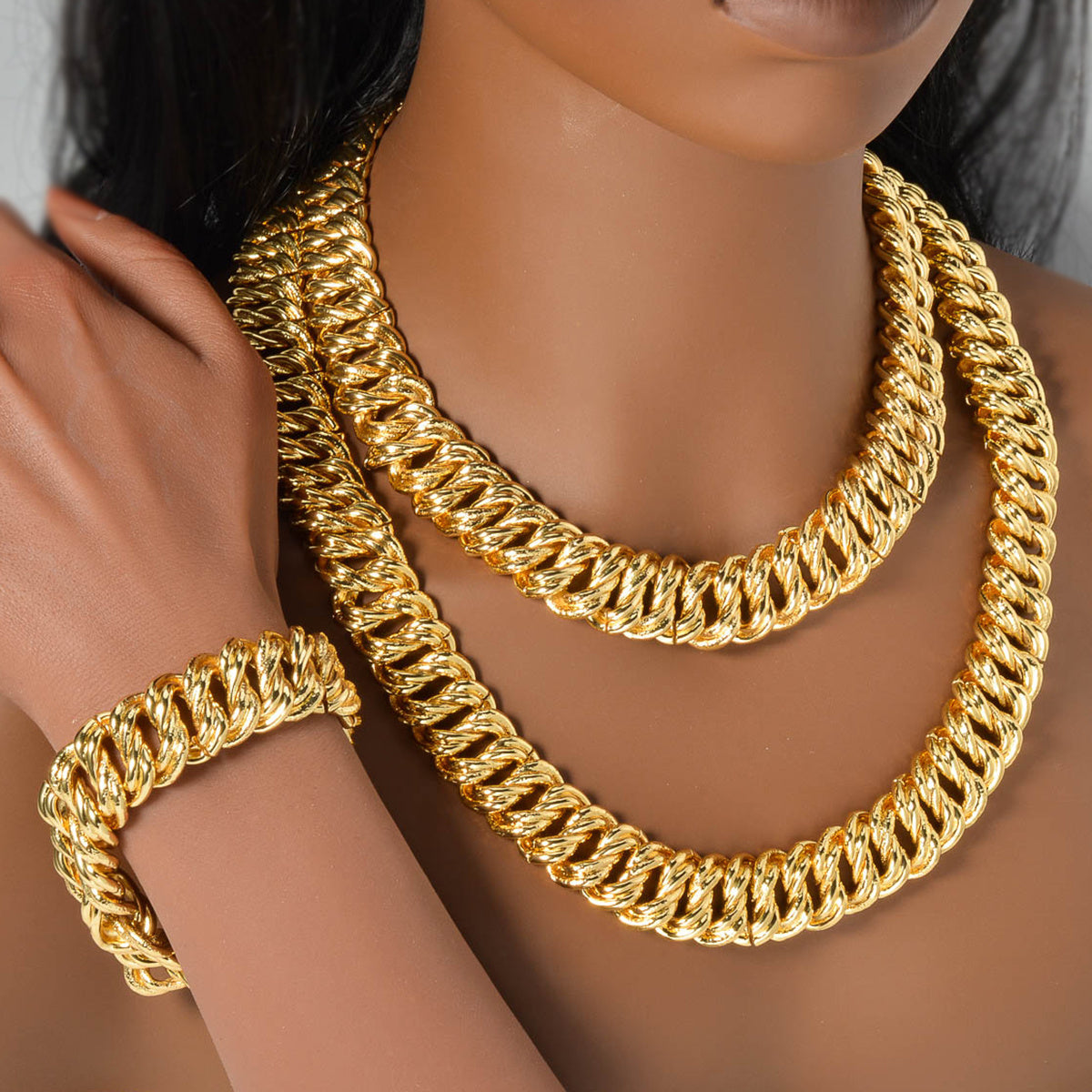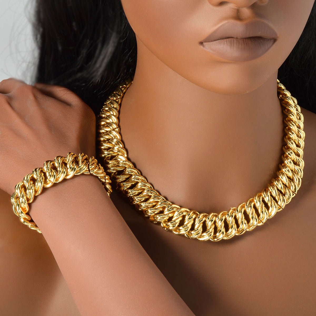 ZEADEAR Hip-Hop Ilhomlangan Burilgan Zanjir Bilaguzuk va Marjon To'plami - Erkaklar va Ayollar uchun Qalin va Hashamatli Mis Zargarlik - Partiyalar, Ko'cha Uslubi, Rok Punk uchun Ideal - Qalin, Zamonaviy Sovg'a